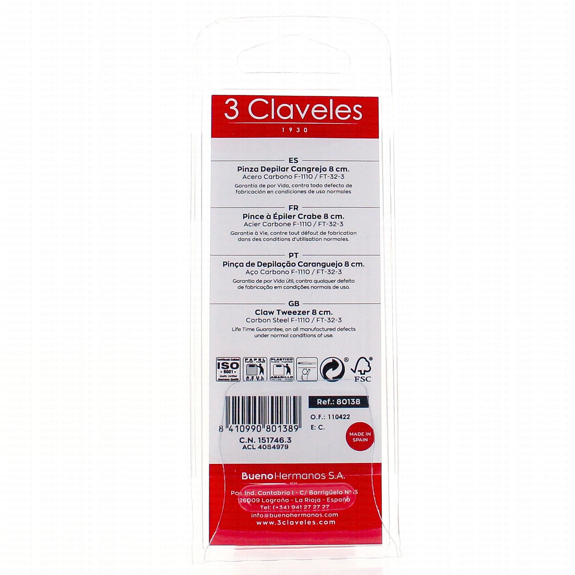 Permet une meilleure stabilité et un appui indolore. Idéal pour les sourcils. Permet d'épiler toutes les parties du corps. Une tradition de plus de 70 ans dans la fabrication de coutellerie fine, ciseaux, pinces et articles de manucure garantit la qualité des produits 3 Claveles.