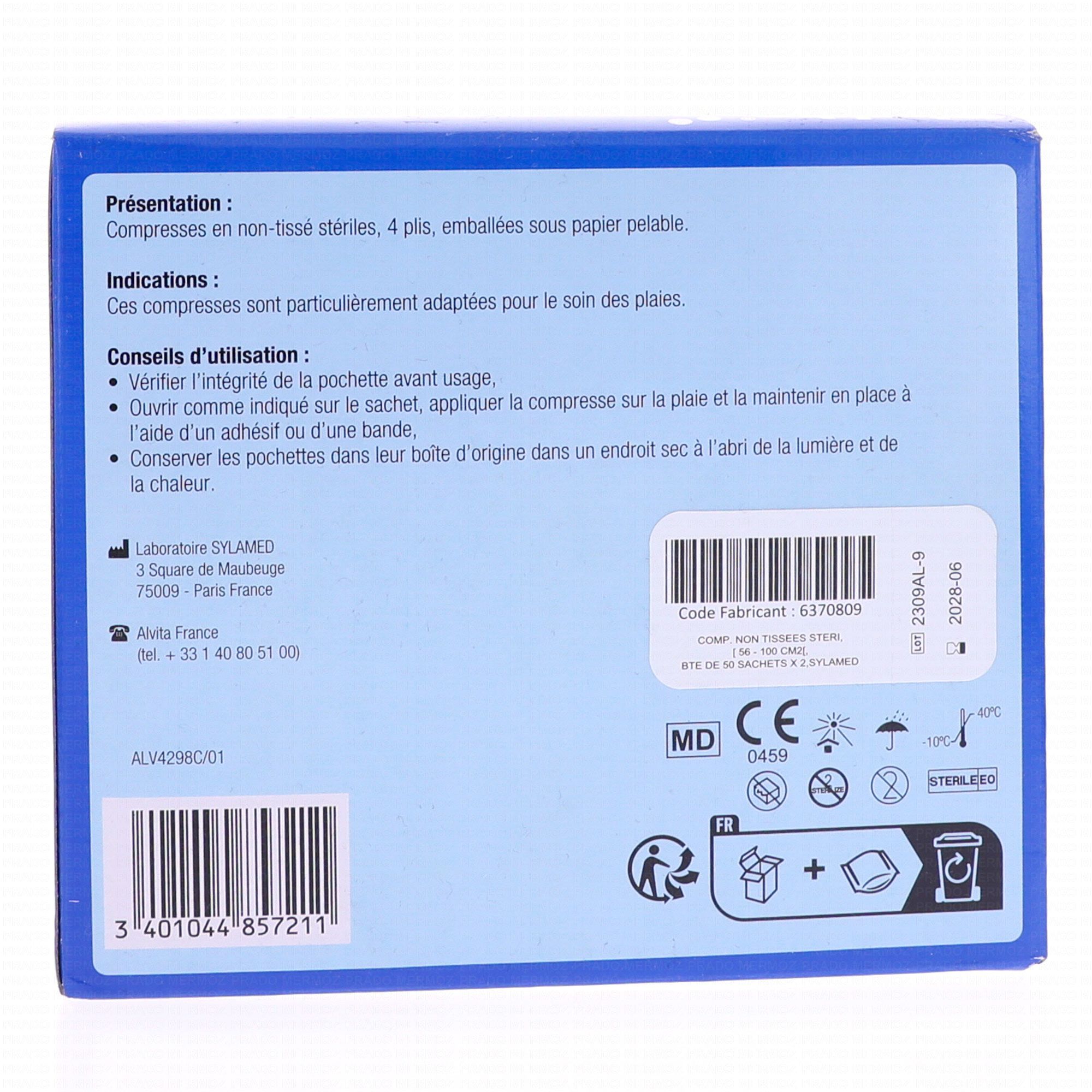 ALVITA Compresses en non-tissé stériles taille 7.5 * 7.5cm - 50 sachets de 2 compresses