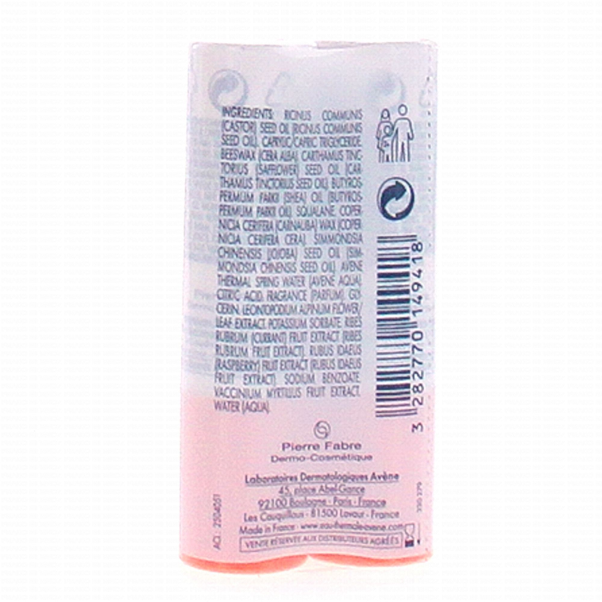 Ricinus communis (castor) seed oil (ricinus communis seed oil), caprylic/capric triglyceride, beeswax (cera alba), carthamus tinctorius (safflower) seed oil (carthamus tinctorius seed oil), butyrospermum parkii (shea) butter (butyrospermum parkii butter), squalane, copernicia cerifera (carnauba) wax (copernicia cerifera cera), simmondsia chinensis (jojoba) seed oil (simmondsia chinensis seed oil), avene thermal spring water (avene aqua), citric acid, fragrance (parfum), glycerin, leontopodium alpinum flower/leaf extract, potassium sorbate, ribes rubrum (currant) fruit extract (ribes rubrum fruit extract), rubus idaeus (raspberry) fruit extract (rubus idaeus fruit extract), sodium benzoate, vaccinum myrtillus fruit extract, water (aqua).