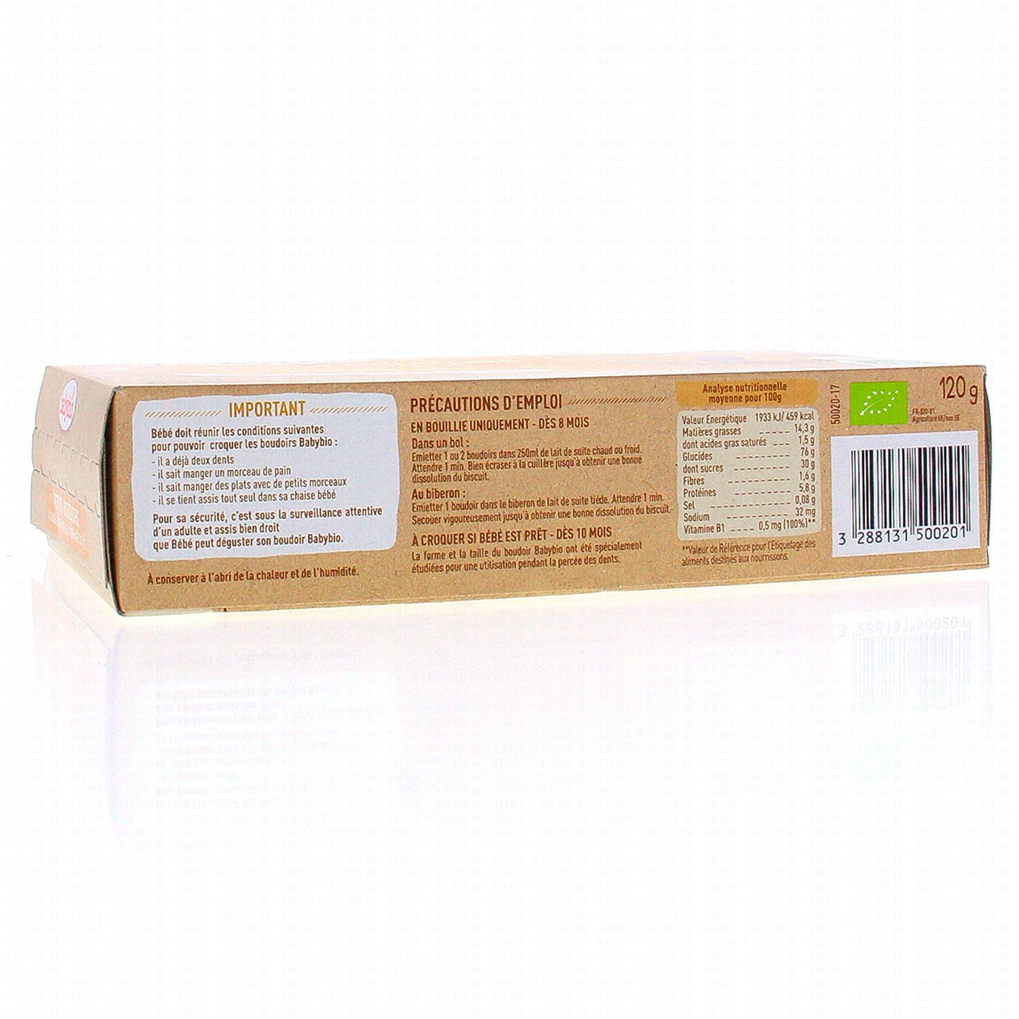 Babybio petits boudoirs à l'huile essentielle d'orange douce sont des biscuits gourmands qui ont spécialement été pensé pour s'intégrer à l'alimentation du bébé de plus de 8 mois.