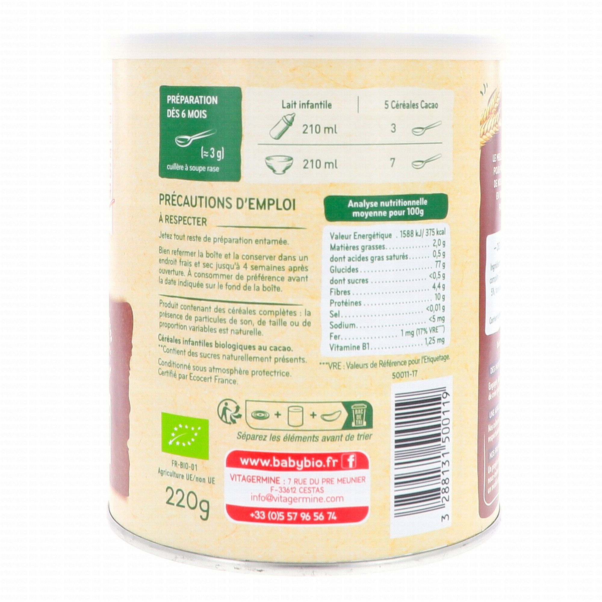 BABYBIO Céréales - Cacao dès 6 mois 220g