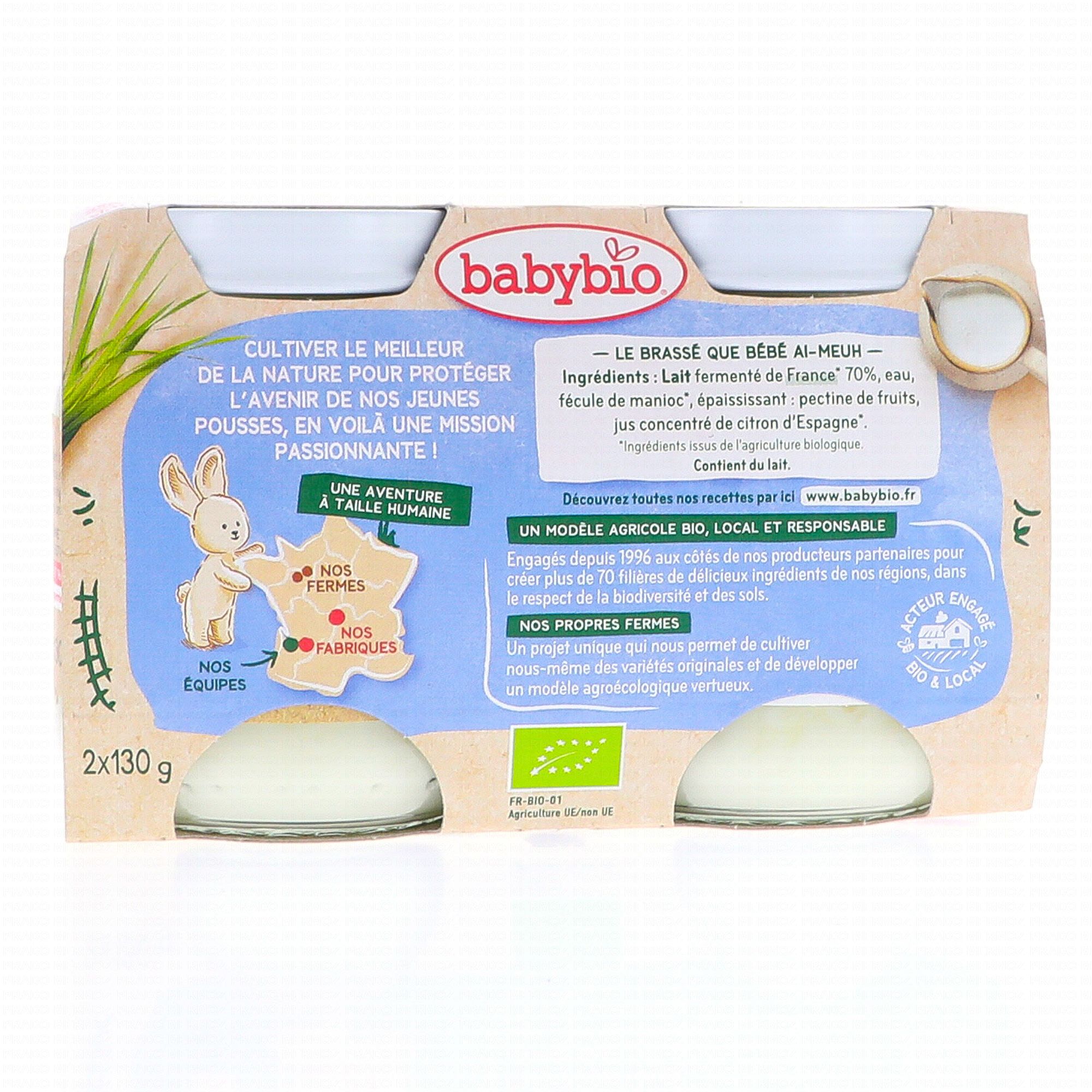 BABYBIO Desserts lactés - Brassé nature bio 2x130g dès 6mois