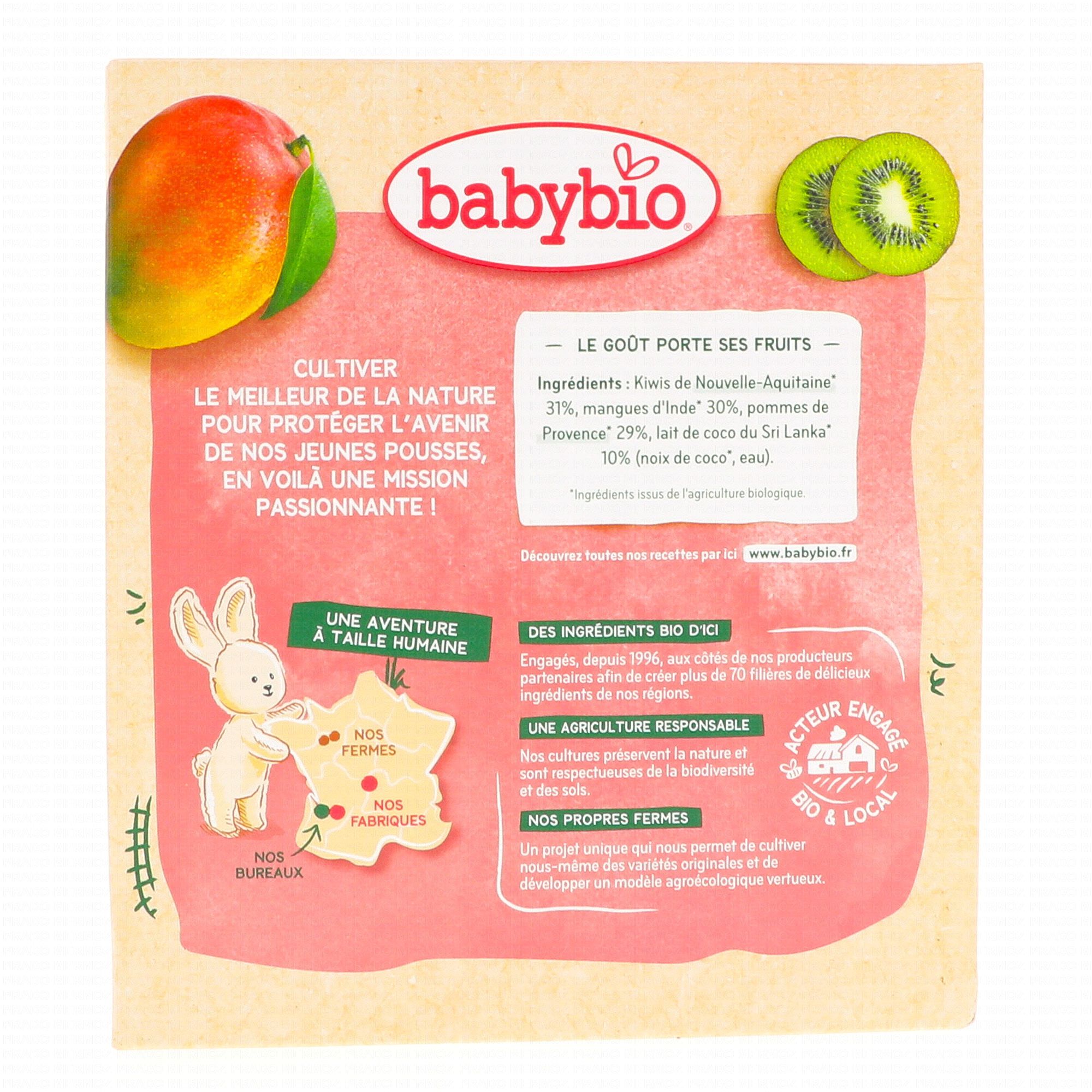 BABYBIO Fruits - Gourdes Kiwi Mangue Lait de Coco bio 4x90g dès 6mois