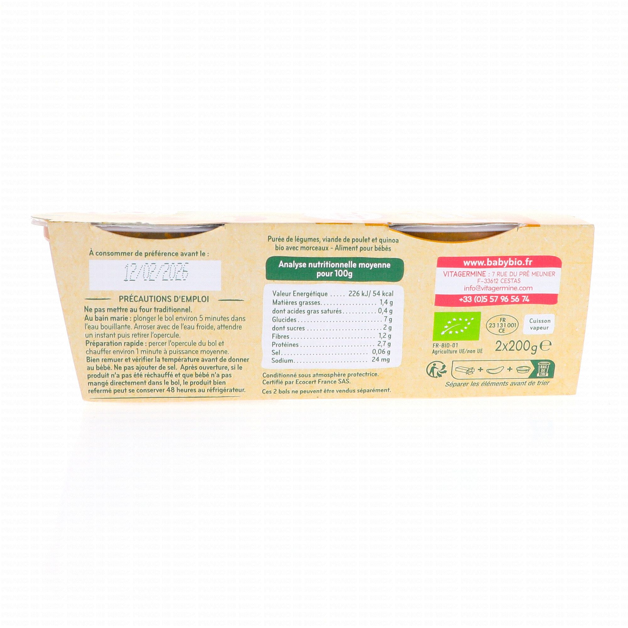 BABYBIO Repas du Midi - Bol Mijoté de légumes Poulet fermier du Poitou, Quinoa 2X200g