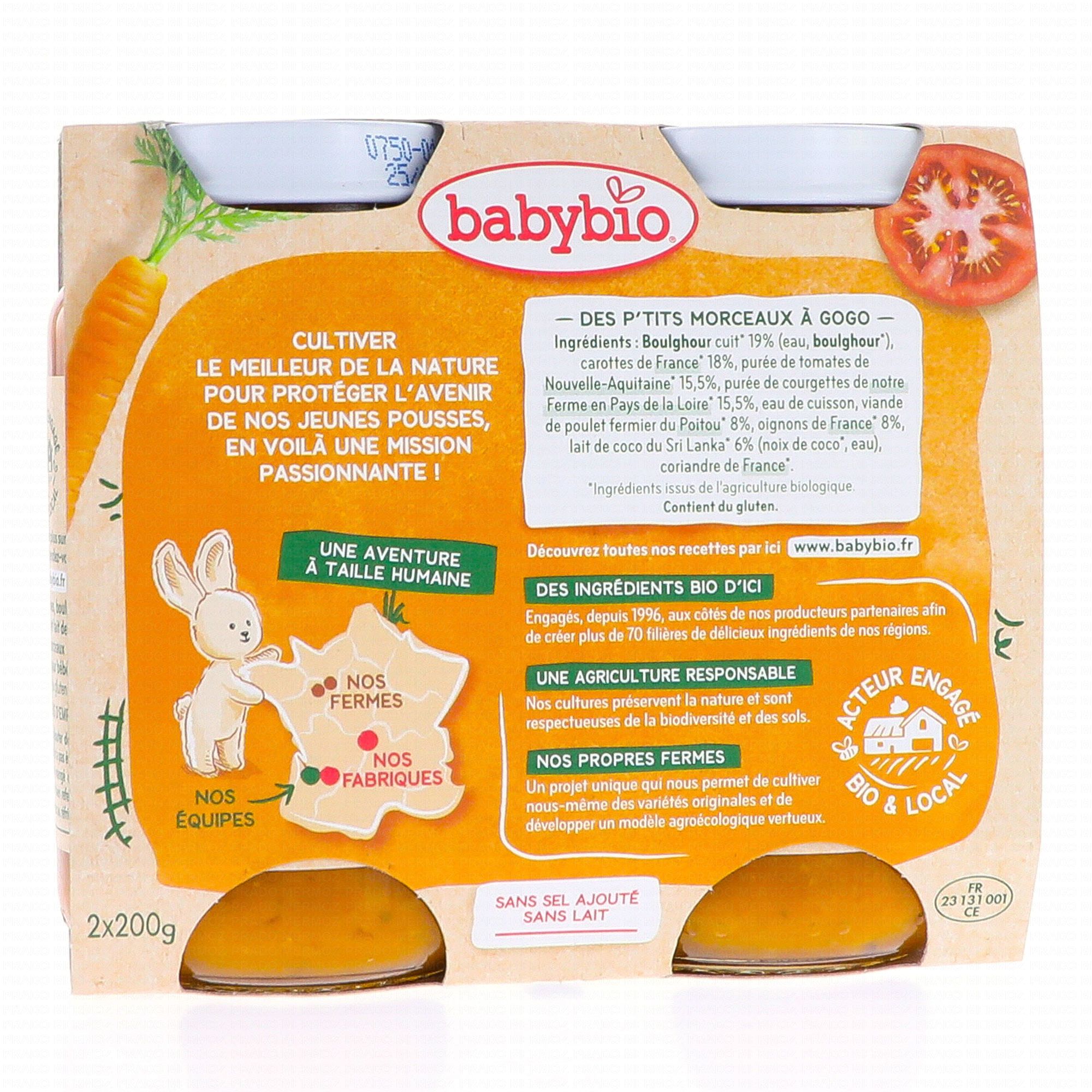 BABYBIO Repas du Midi - Petits Légumes Boulghour Poulet Lait de Coco Bio 2x200g