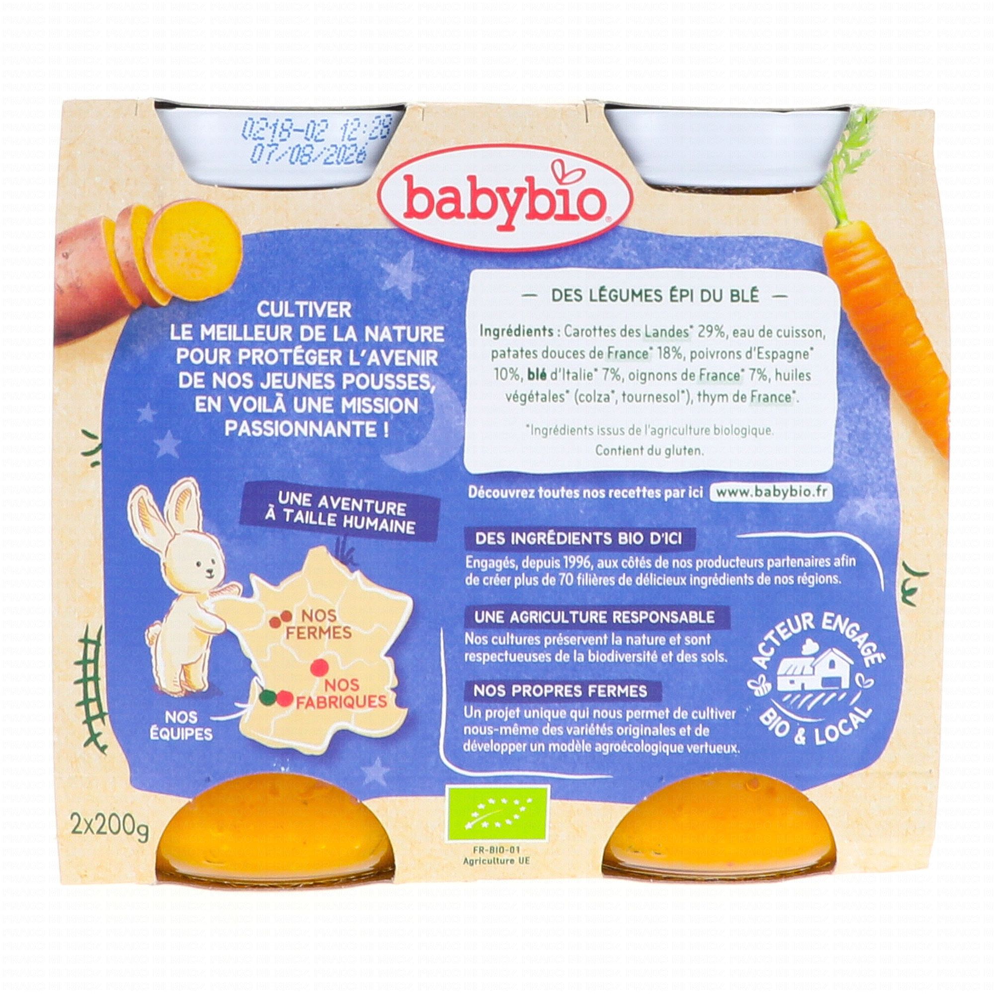 BABYBIO Repas du Soir - Petits pots carottes, patate douce, blé dès 6 mois 2x200g