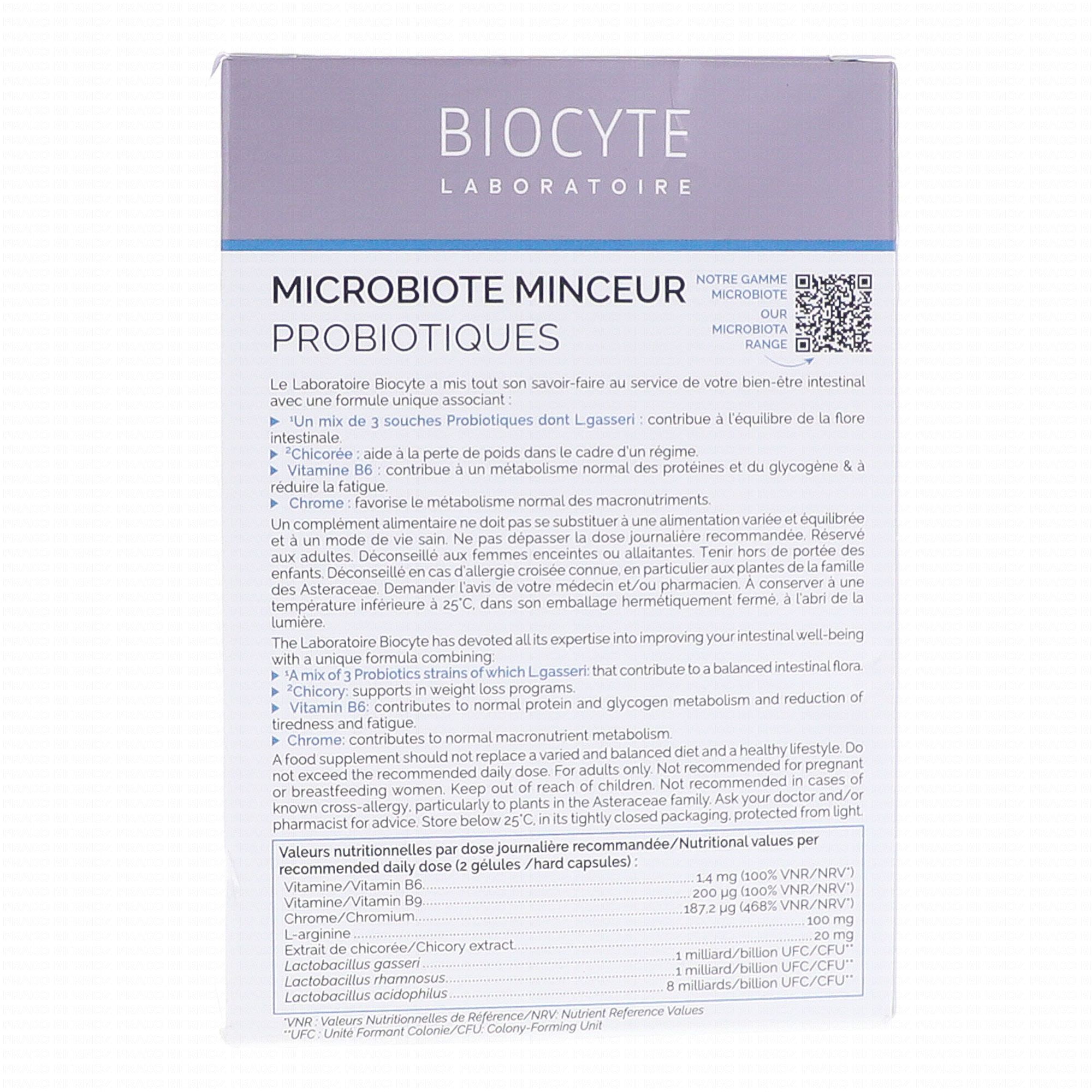 BIOCYTE Microbiote minceur Probiotiques x40 gélules contient les éléments suivants :