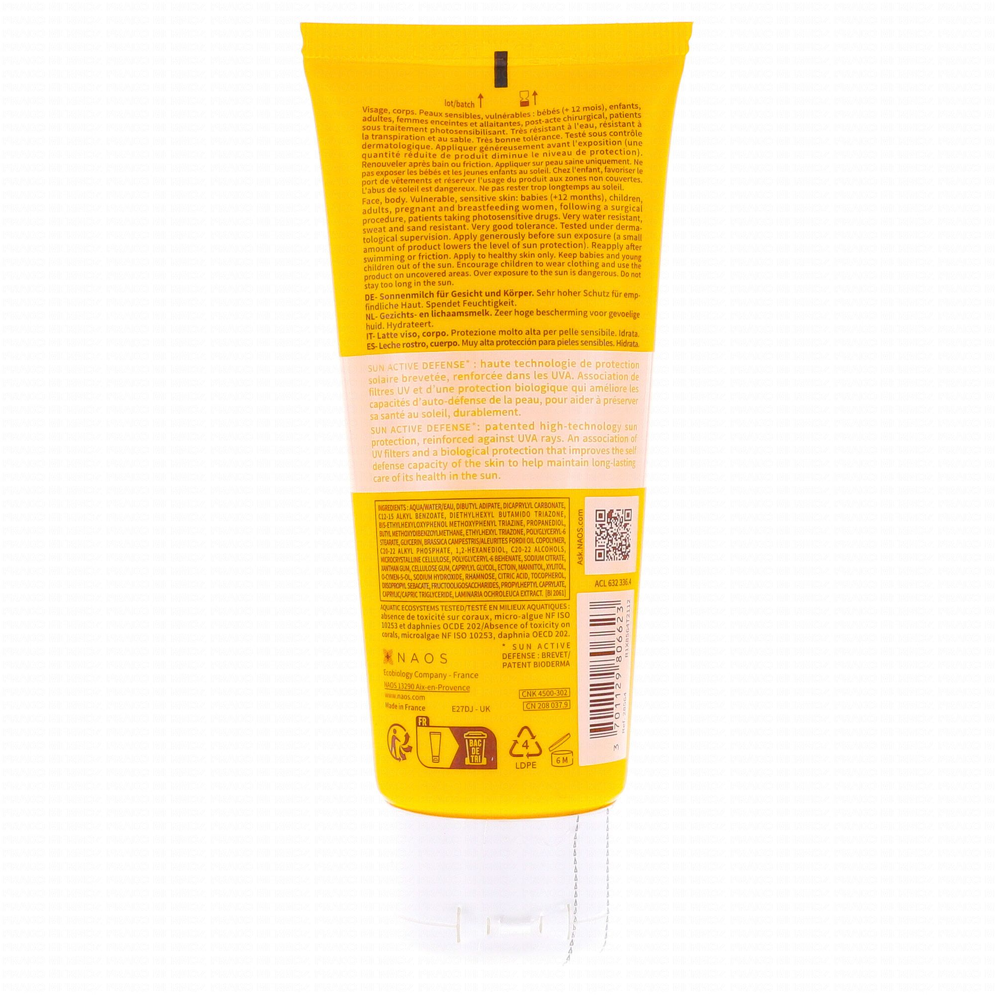 Lait solaire ultra hydratant idéal pour le visage et le corps, il offre une protection très haute, invisible et non parfumée, adaptée pour les peaux sensibles de toute la famille.