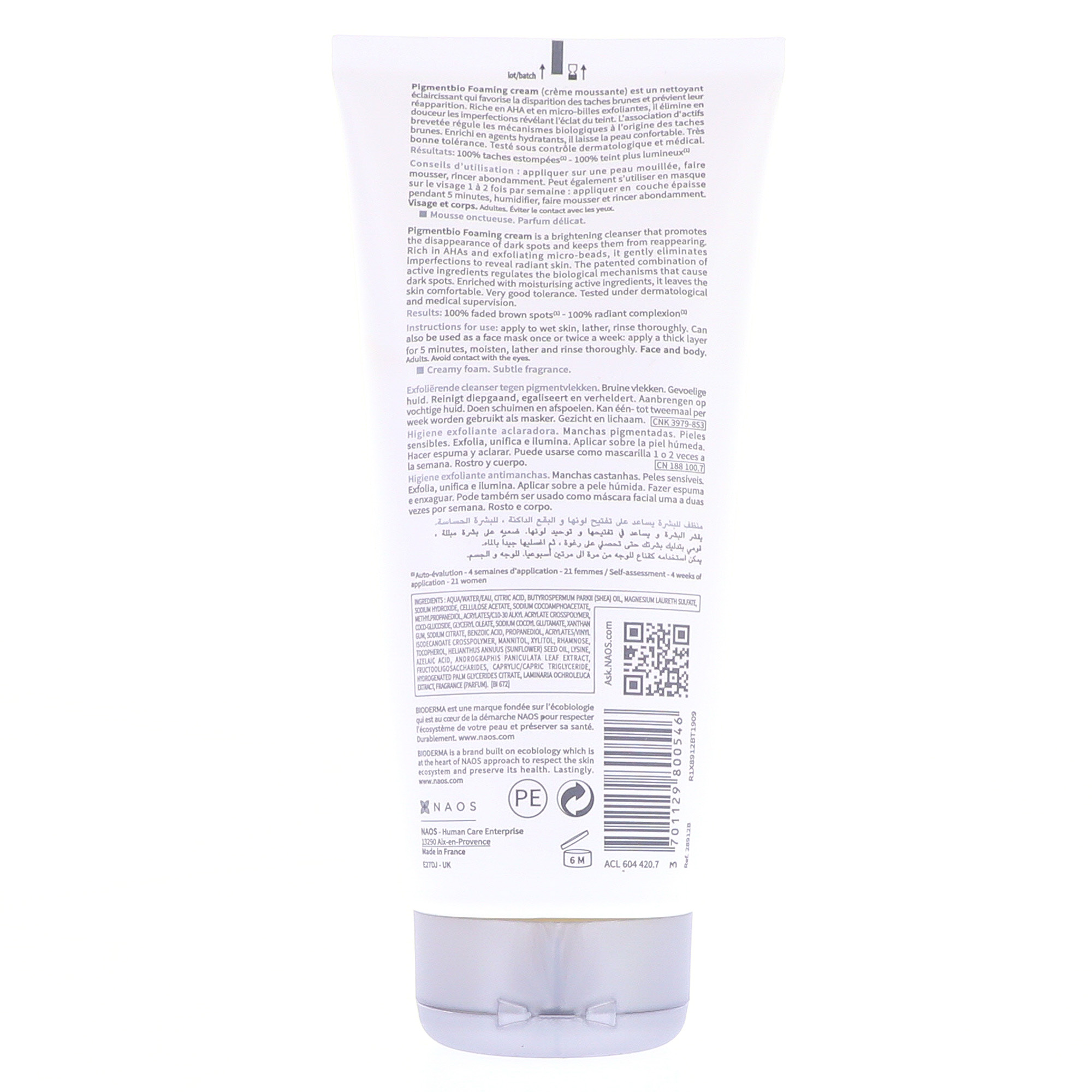 Nettoyant éclaircissante. Exfolie, unifie et illumine. Peaux sensibles.