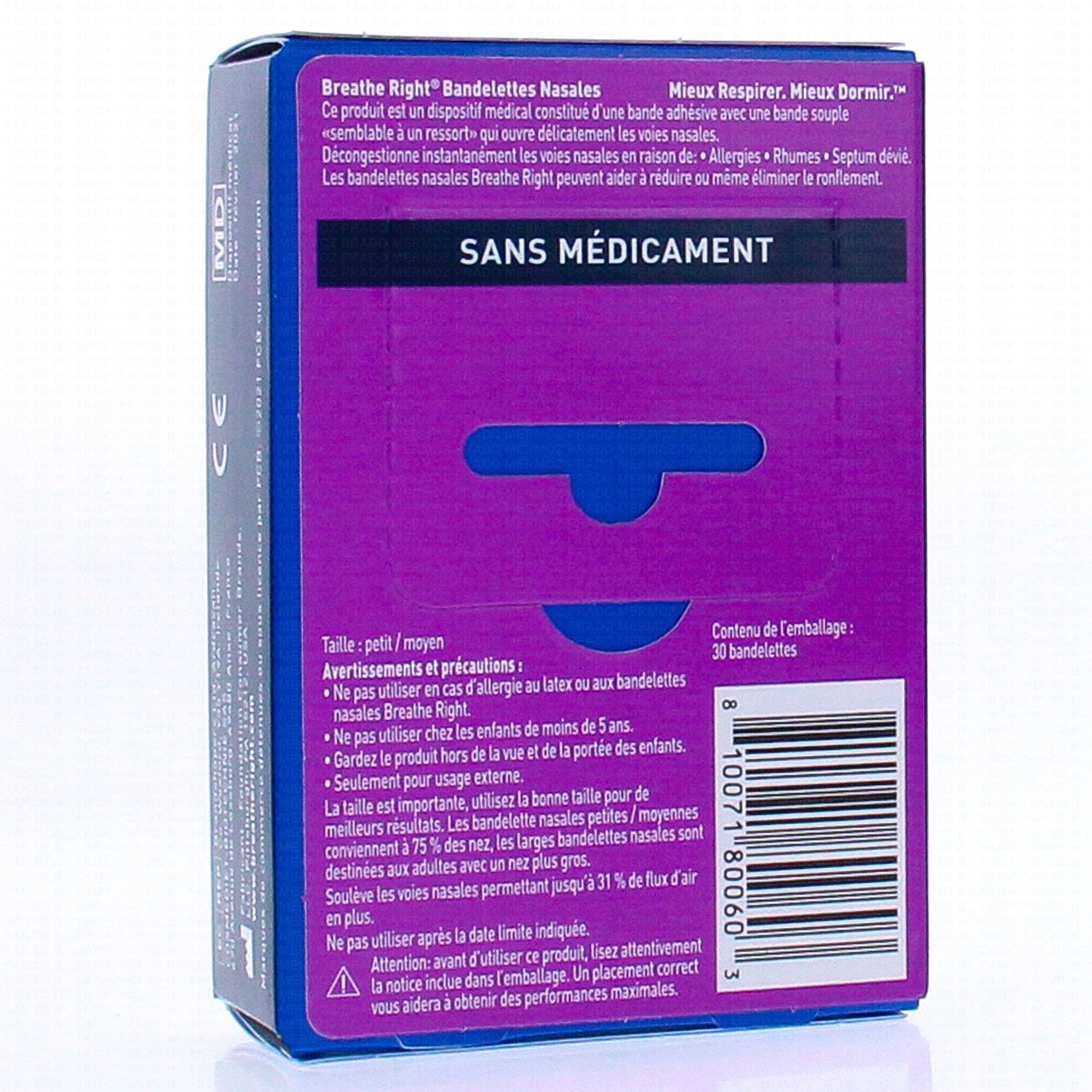 BREATHE RIGHT Bandelettes nasales nez congestionné sensitive petit/moyen 30 bandelettes