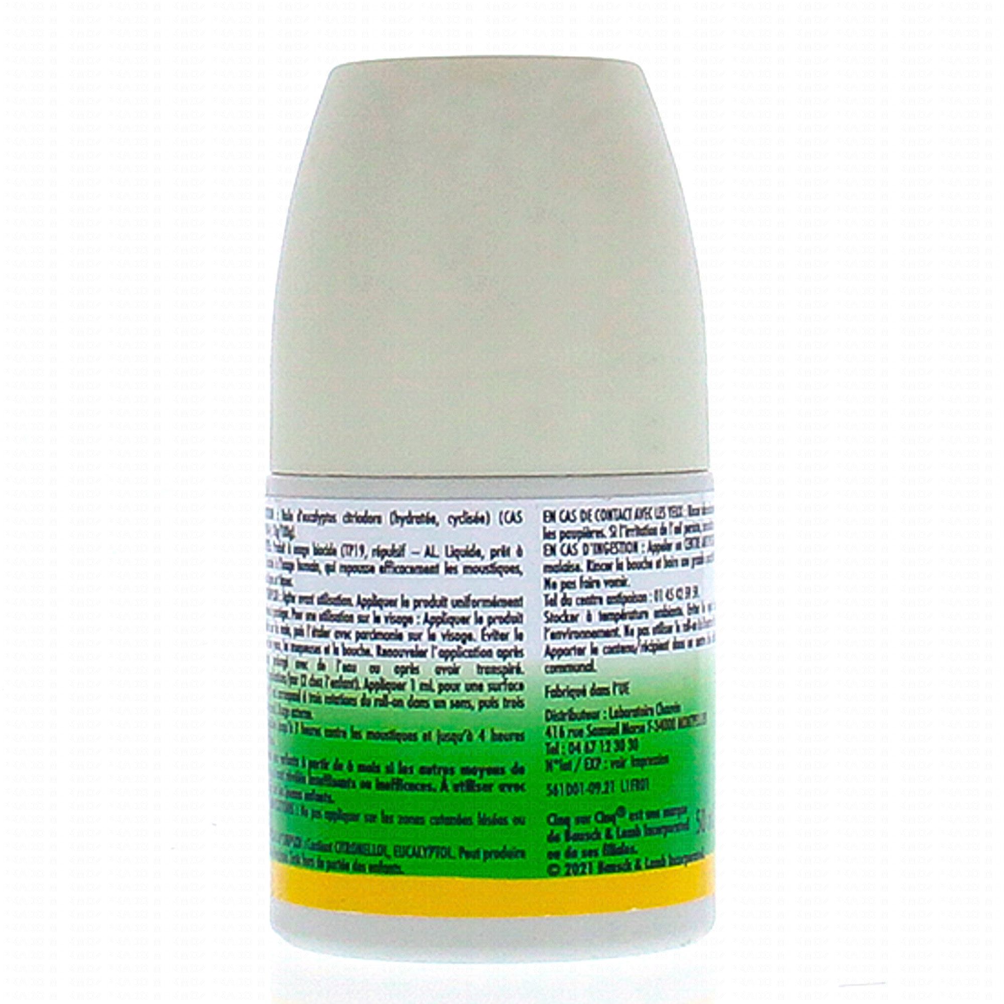 Cinq-sur-Cinq Huile essentielle Citriodora Roll-on est formulé à base de : Citriodiol d'Origine Naturelle (Cis- et Trans-P-Menthane-3,8 Diol; CAS : 42822-86-6; 10g/100g).