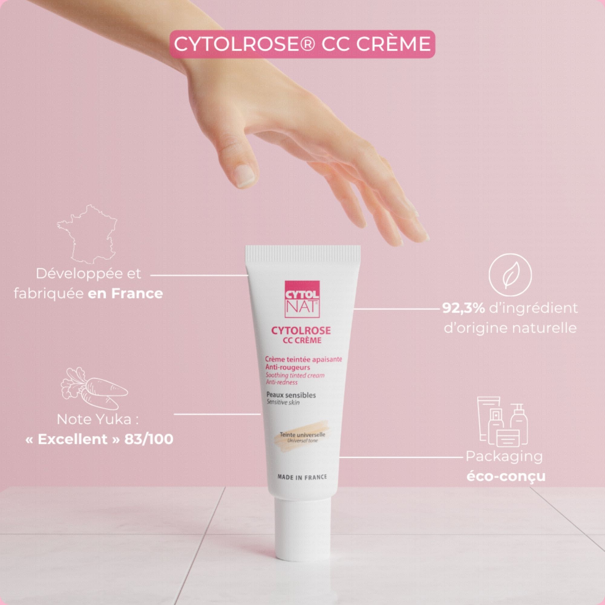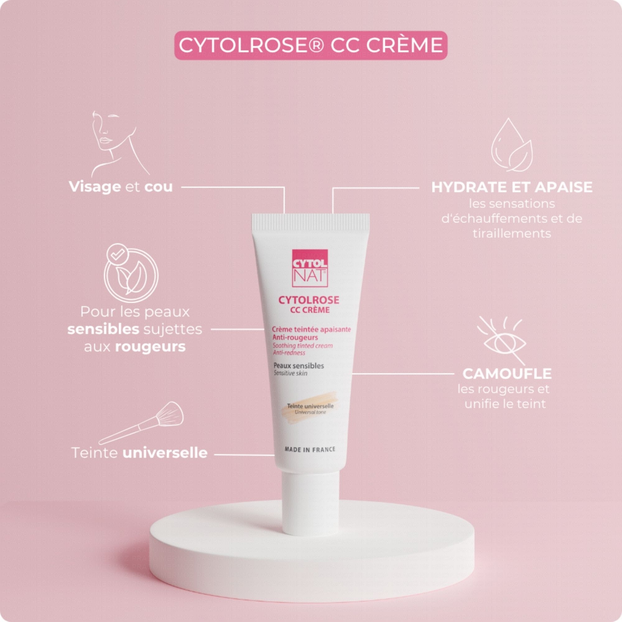 La crème Cytolrose CC est destinée aux peaux sensibles et réactives, sujettes aux rougeurs afin d'en atténuer l'aspect grâce à sa teinte universelle.