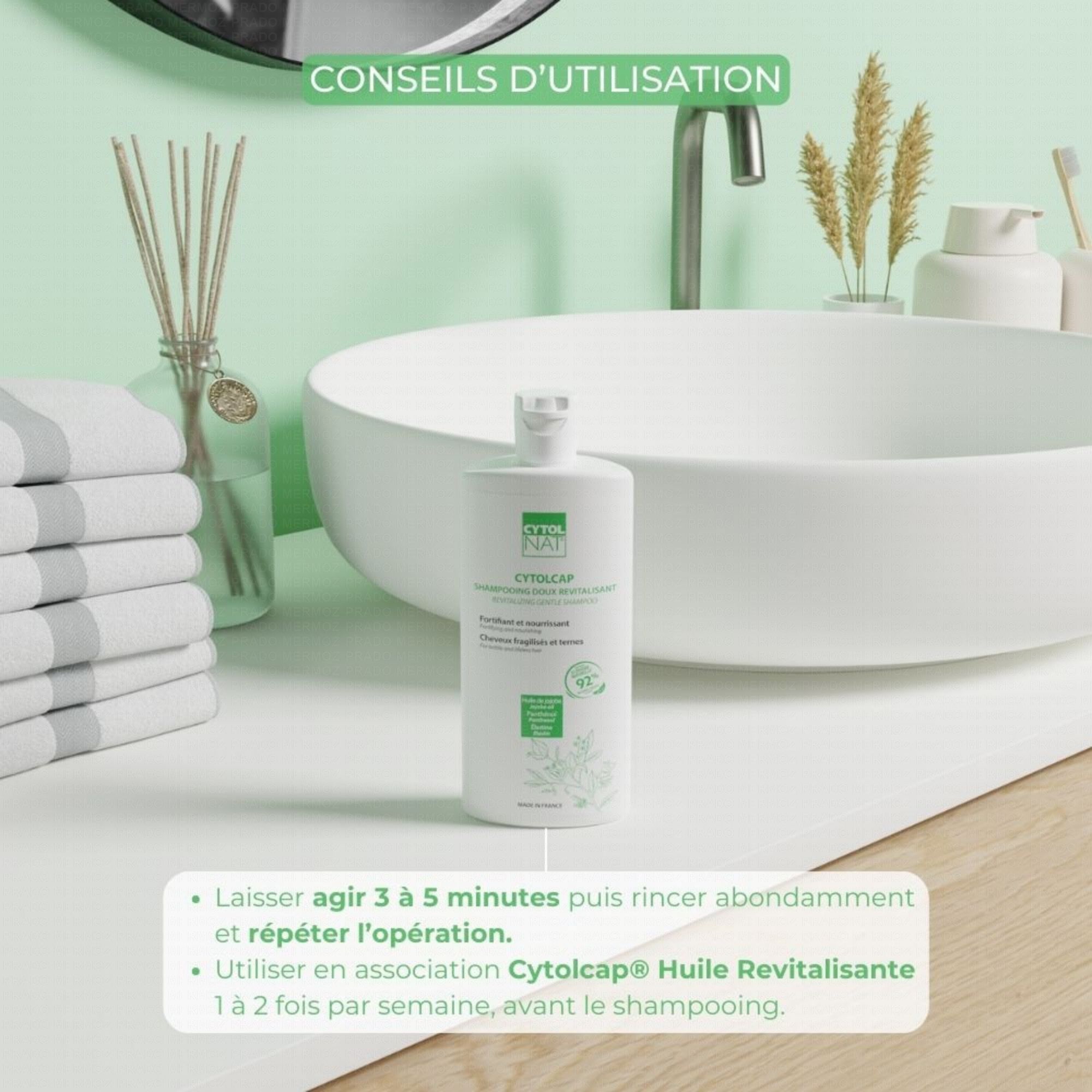 Recommandé pour une utilisation quotidienne, Cytolcap Shampooing Doux Revitalisant participe à la protection et au renforcement des fibres capillaire