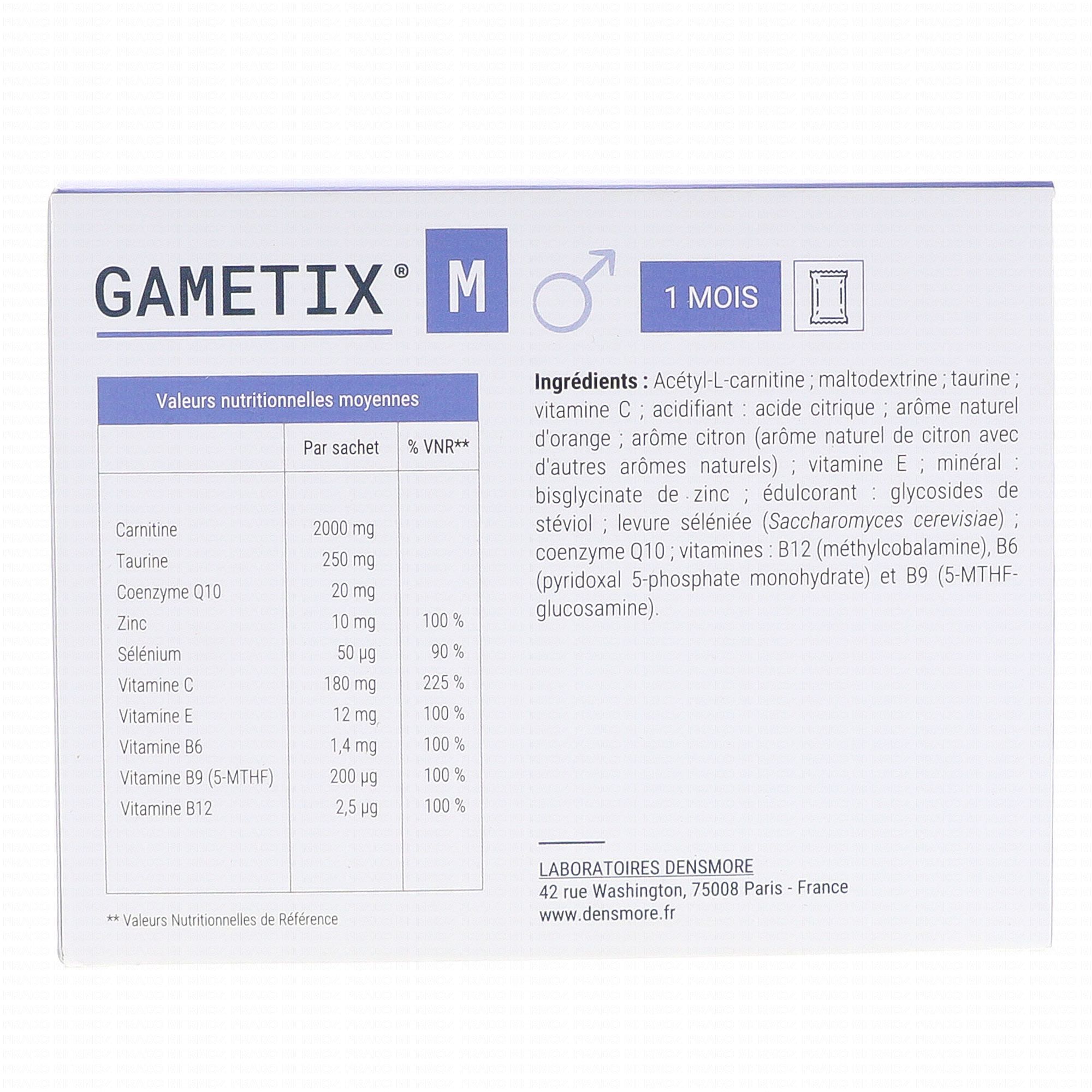DENSMORE Gametix M Fertilité Homme x30 Sachets contient les éléments suivants :