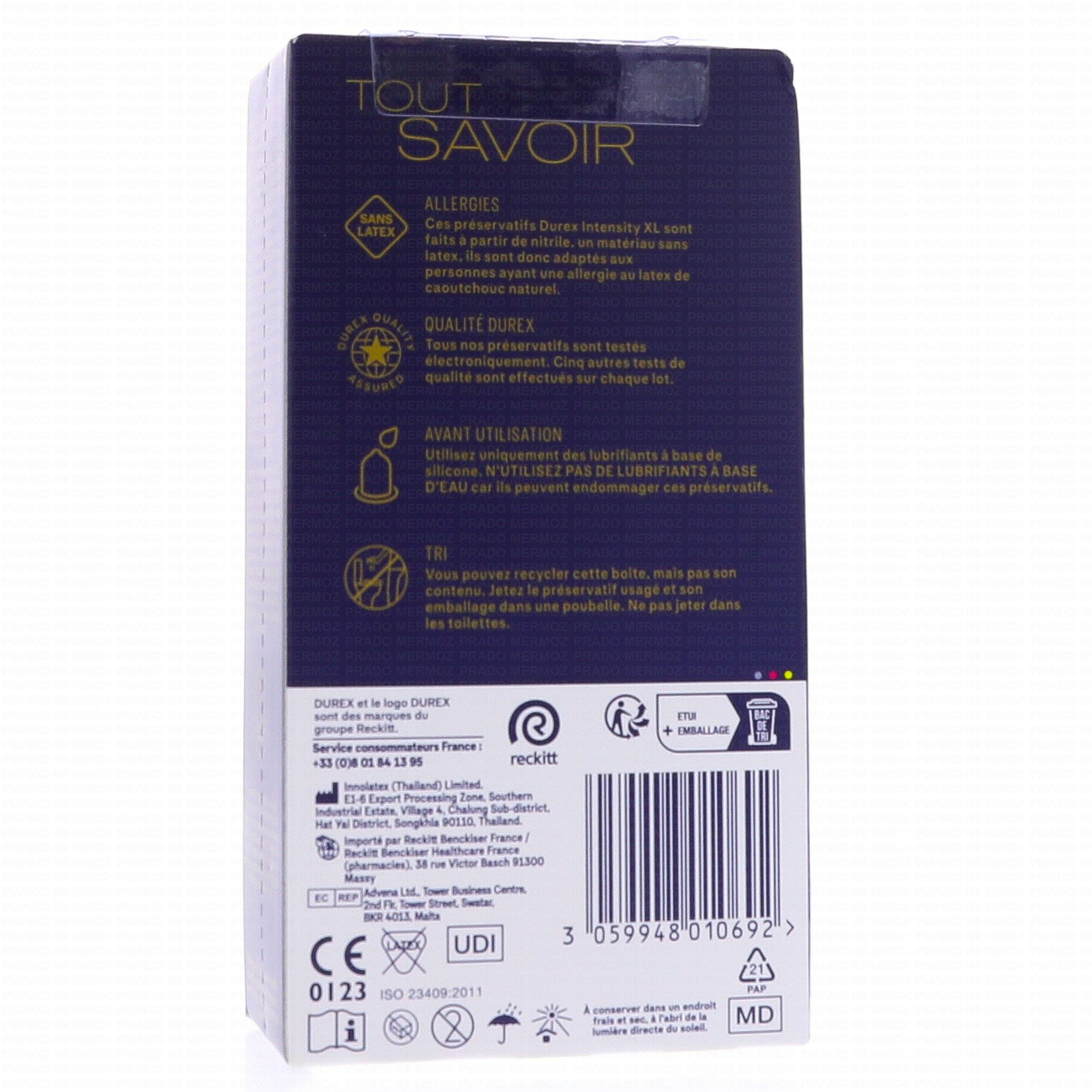 DUREX Intensity - Préservatifs Sans Latex Chaleur Corporelle boite de 10 - taille xl