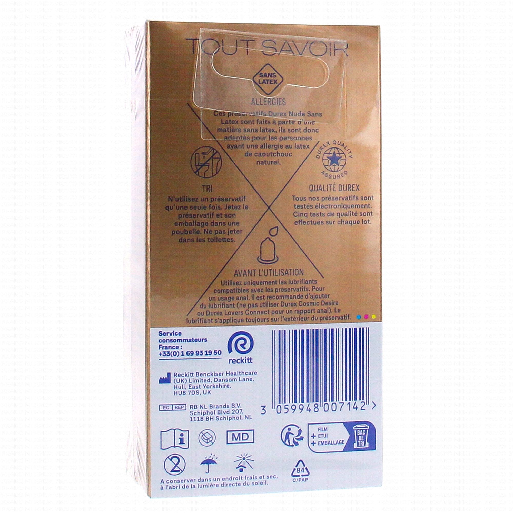 DUREX Préservatifs - Nude Sans Latex - Sensation Peau Contre Peau 10 préservatifs