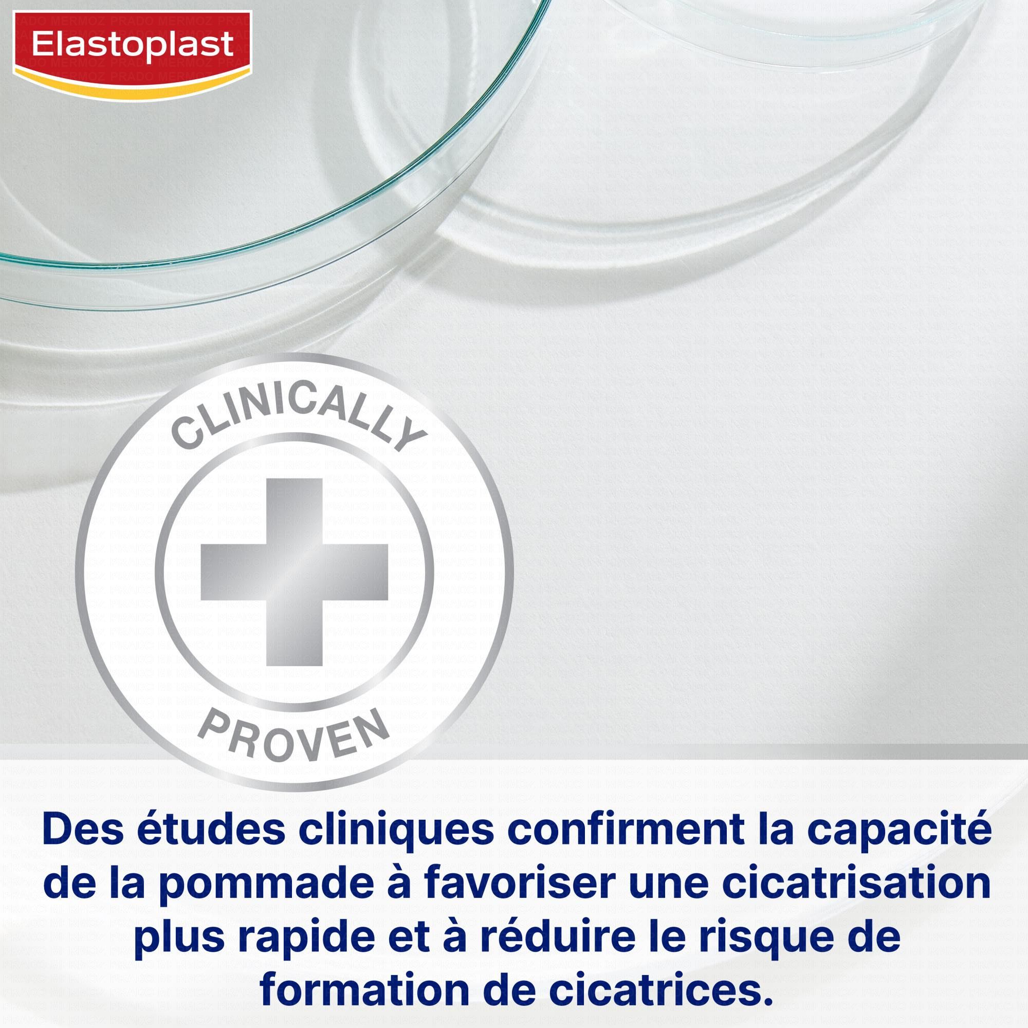 La Pommade cicatrisante Elastoplast s'utilise pour les plaies et les peaux abîmées. Elle permet une cicatrisation deux fois plus rapide des plaies superficielles, des brûlures du premier degré et des brûlures légères du second degré. Le principe de la pommade cicatrisante est de créer un milieu humide qui aide au processus naturel de la cicatrisation de la peau. L'application de la pommade cicatrisante Elastoplast va permettre la formation d'un film protecteur tout en laissant la peau respirer. Elle prévient également le dessèchement de la plaie.