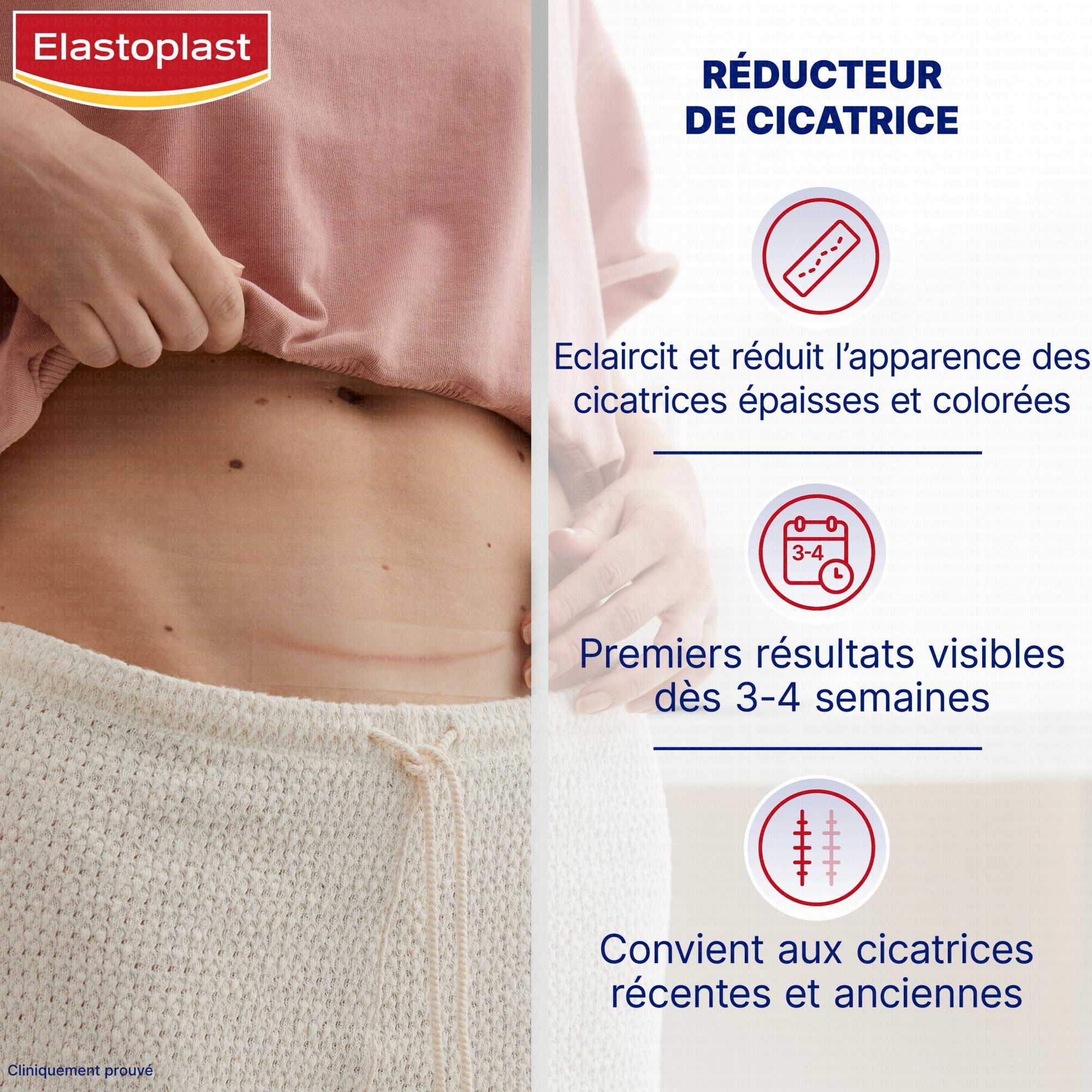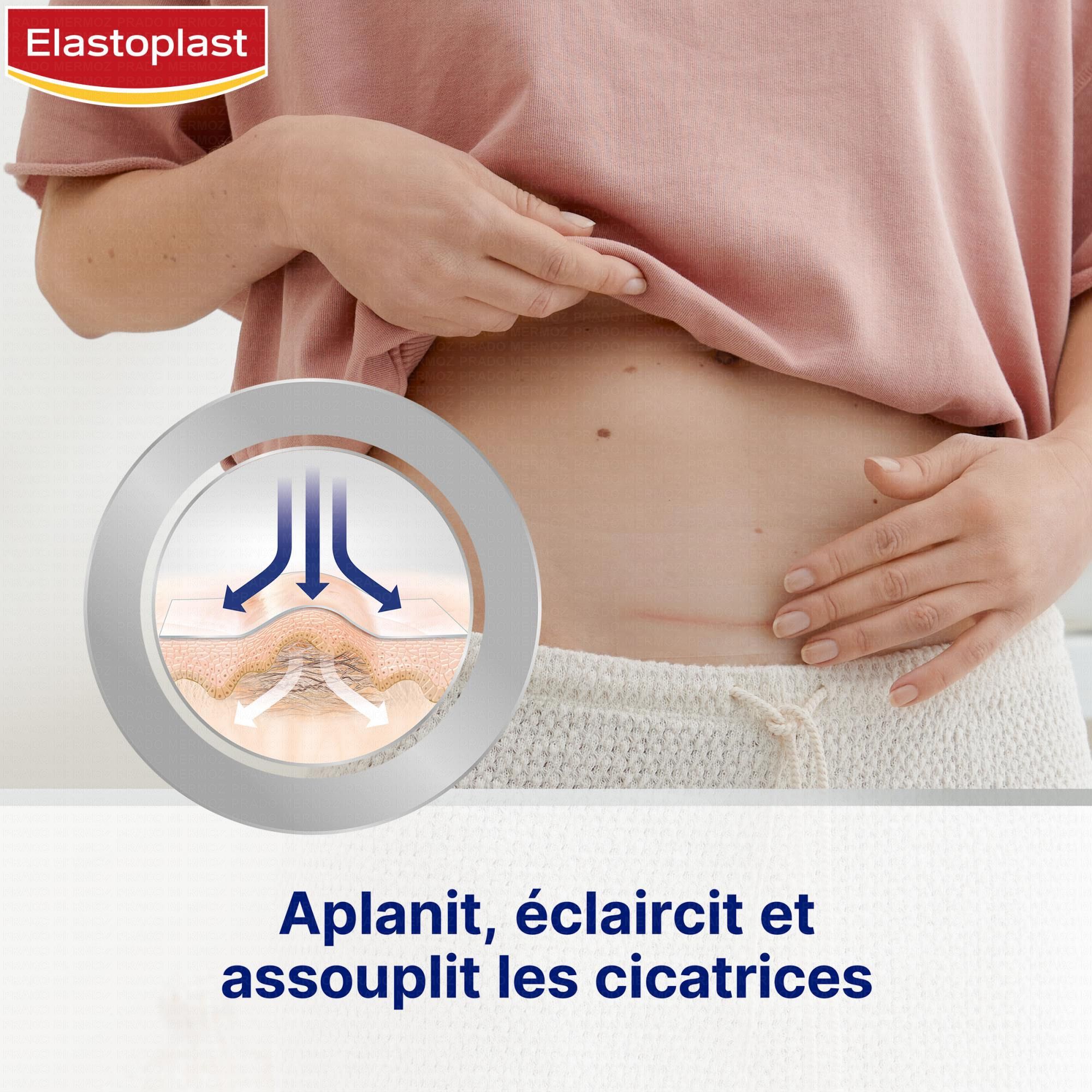 Les 21 pansements Réducteur de Cicatrices XL Elastoplast favorisent la cicatrisation en accélérant leur aplanissement tout en réduisant l'apparence de la cicatrice.