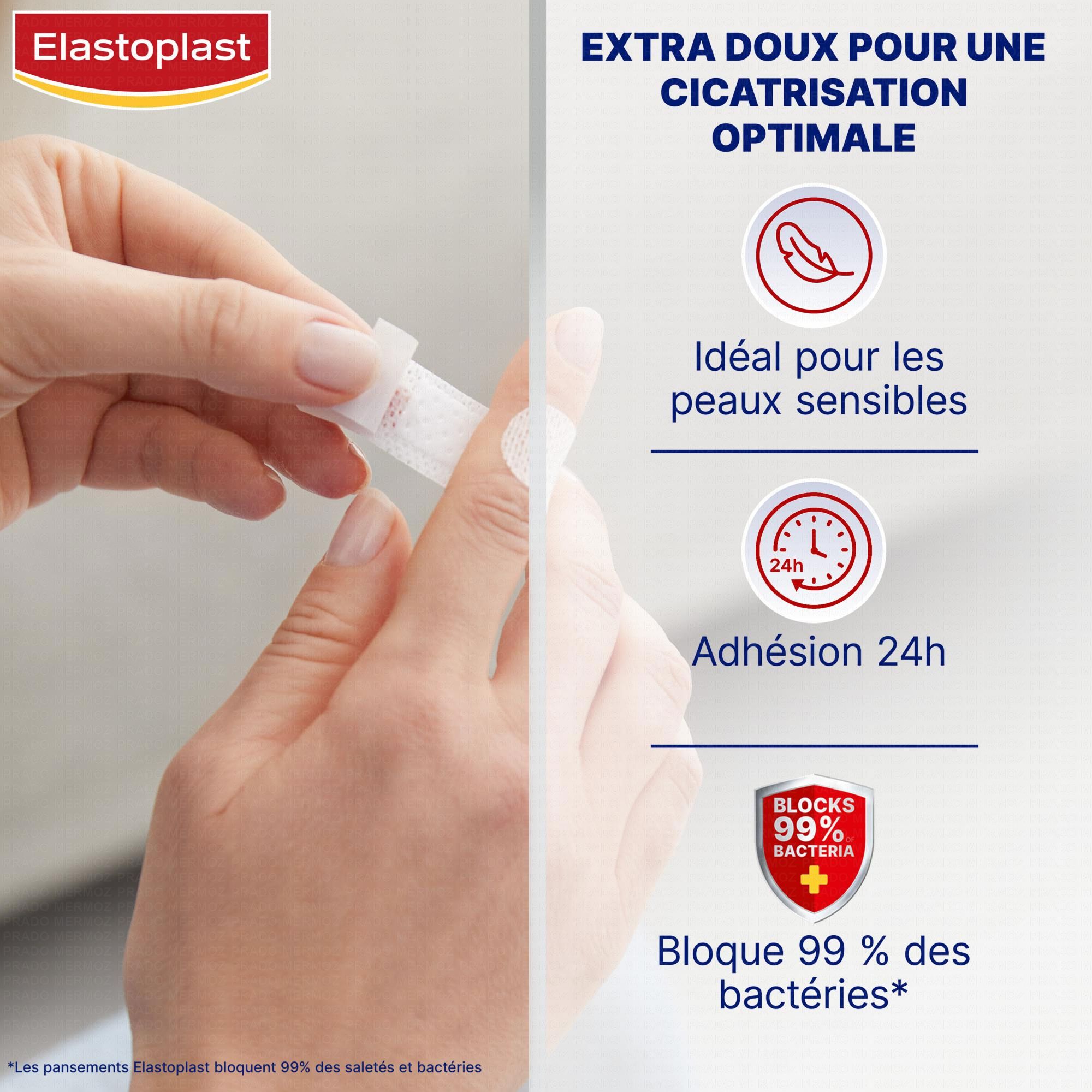Les Pansements Sensibles Elastoplast protègent les plaies tout en laissant la peau respirer.