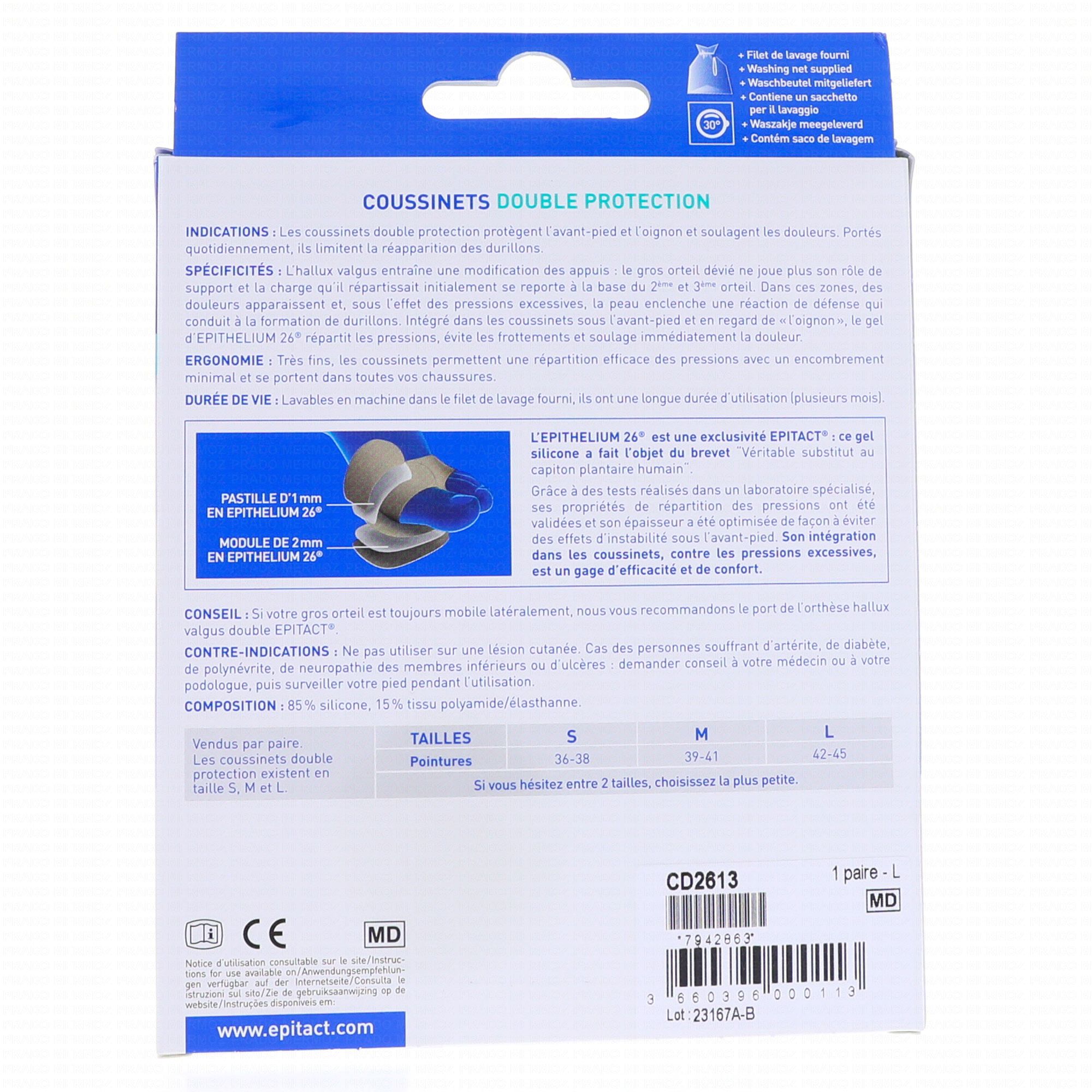 EPITACT Coussinets double protection oignon et douleurs plantaires taille l