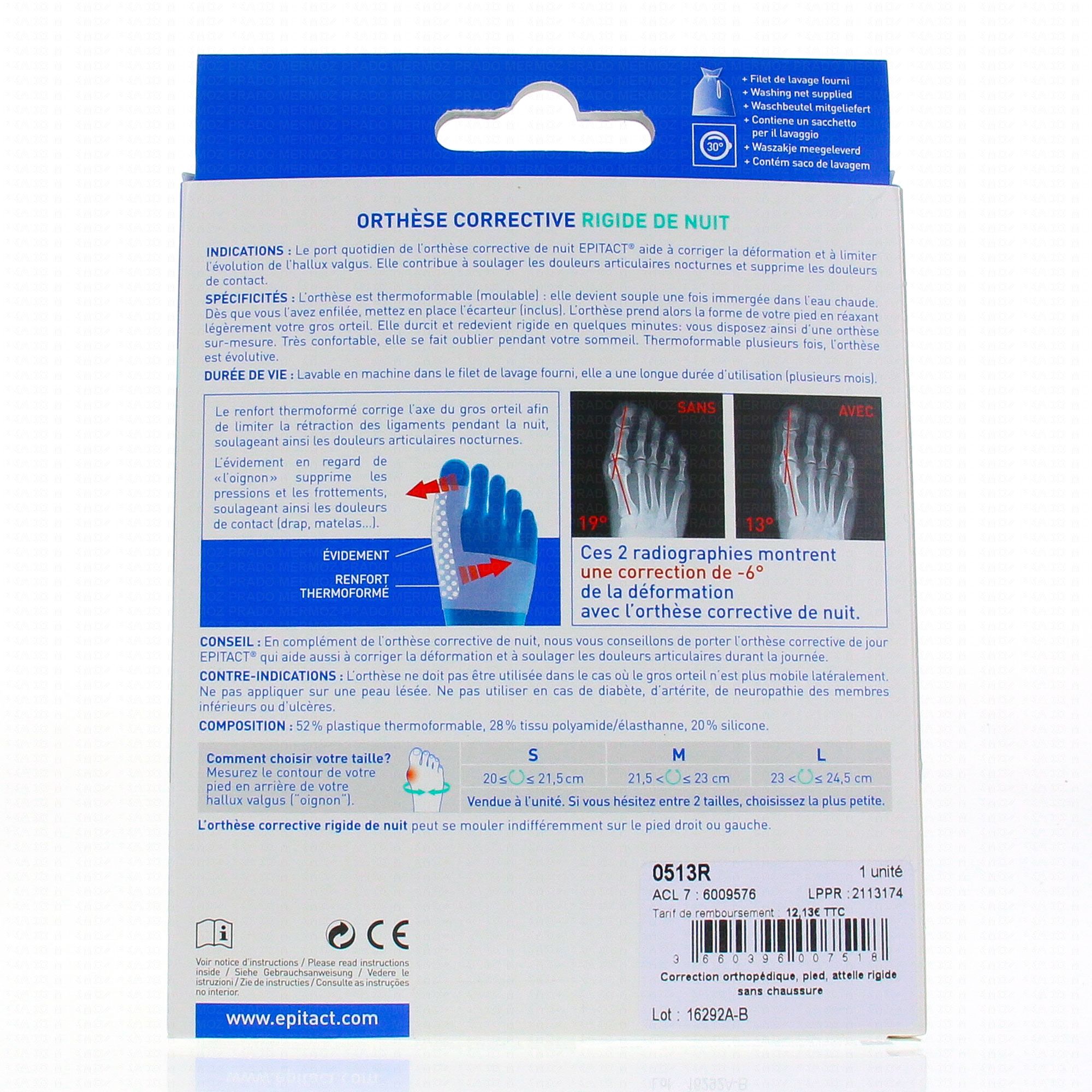 EPITACT Orthèse corrective de l'hallux valgus oignon NUIT taille l (23 à 24,5 cm)