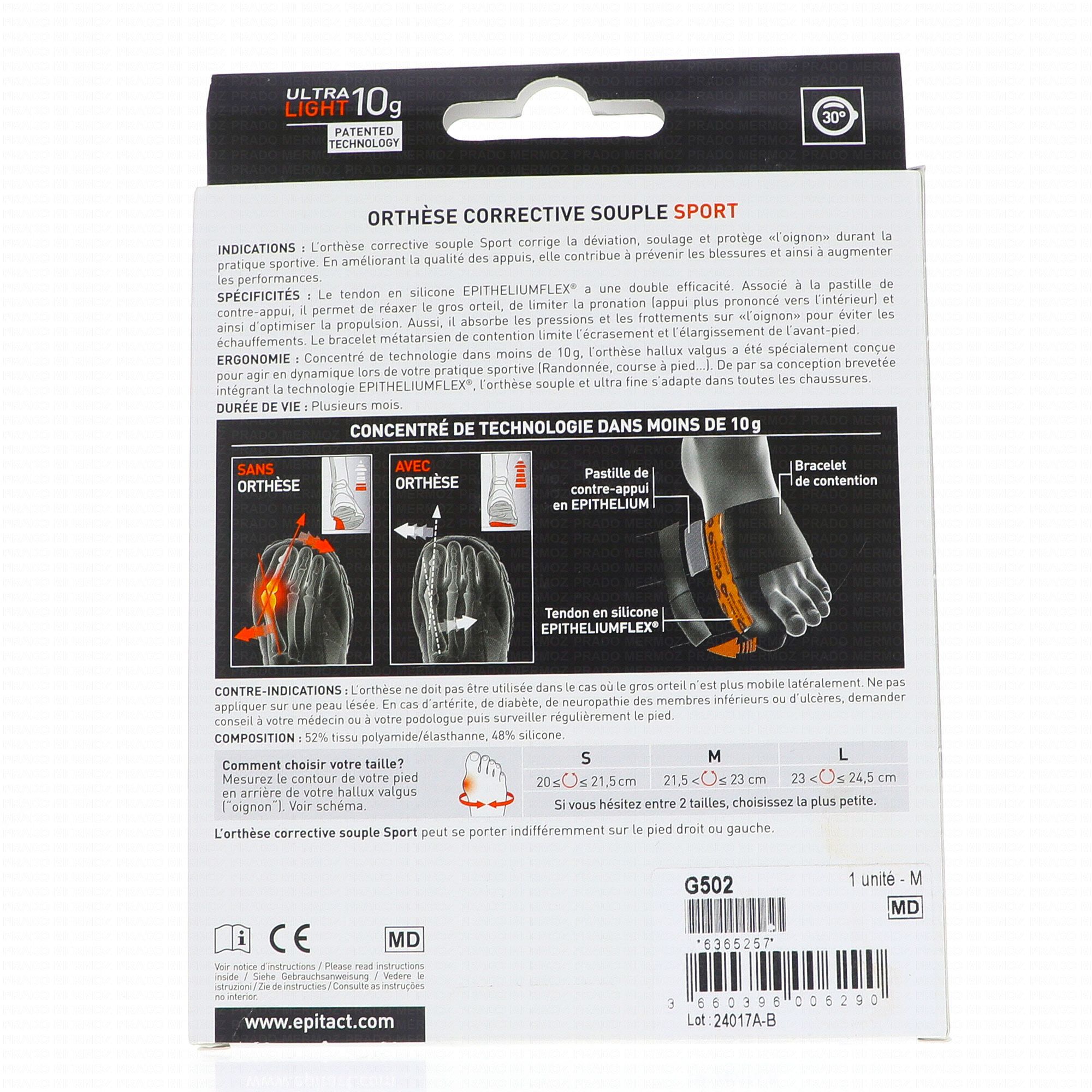 EPITACT SPORT Orthèse corrective hallux valgus, oignons taille m