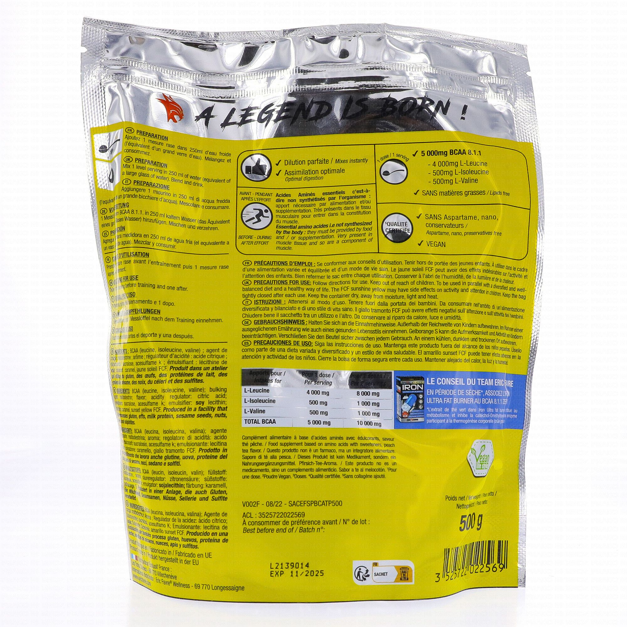 ERIC FAVRE BCAA 8.1.1 Zero 500g Goût : Thé Pêche