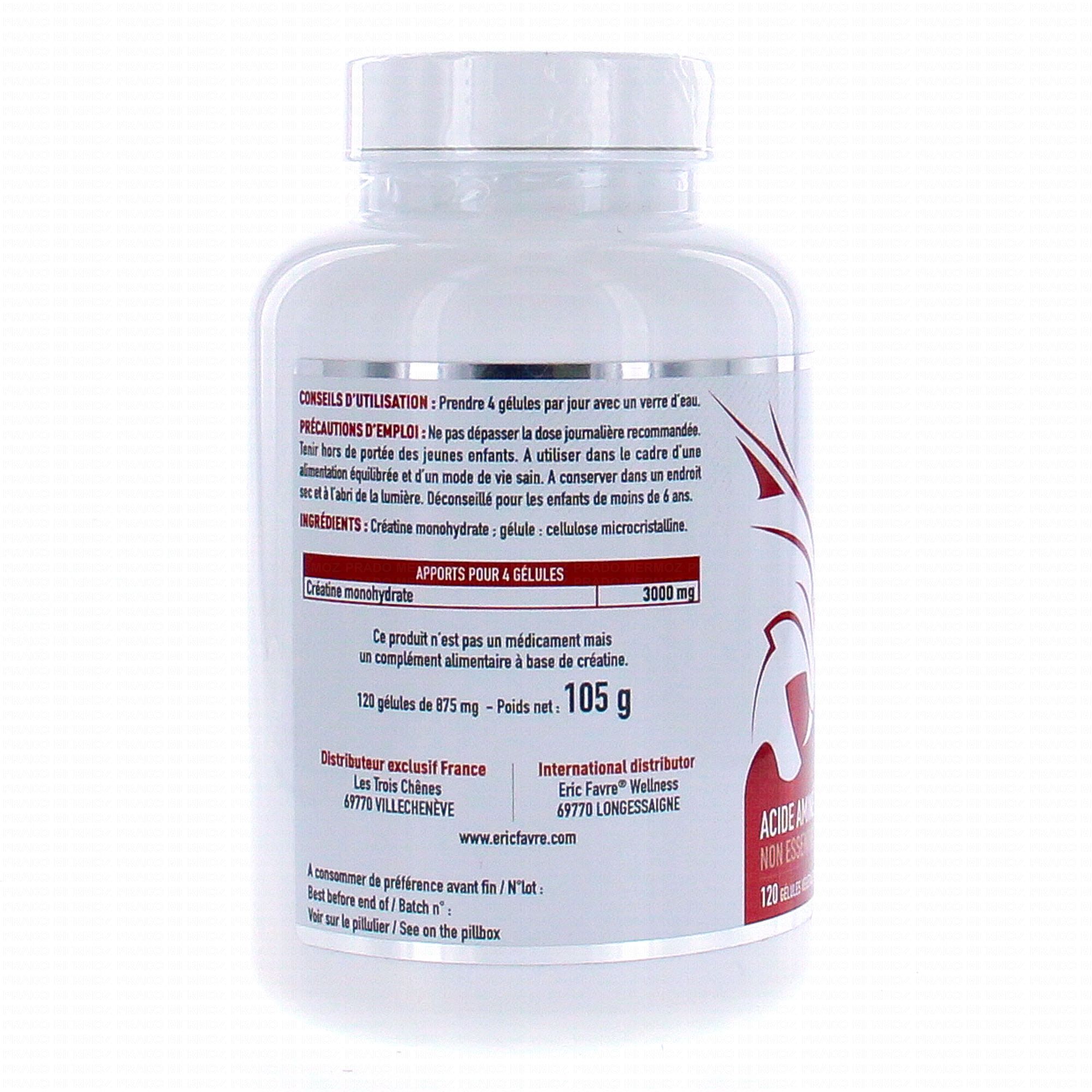 ERIC FAVRE Créatine 3000mg 120 gélules contient les éléments suivants :