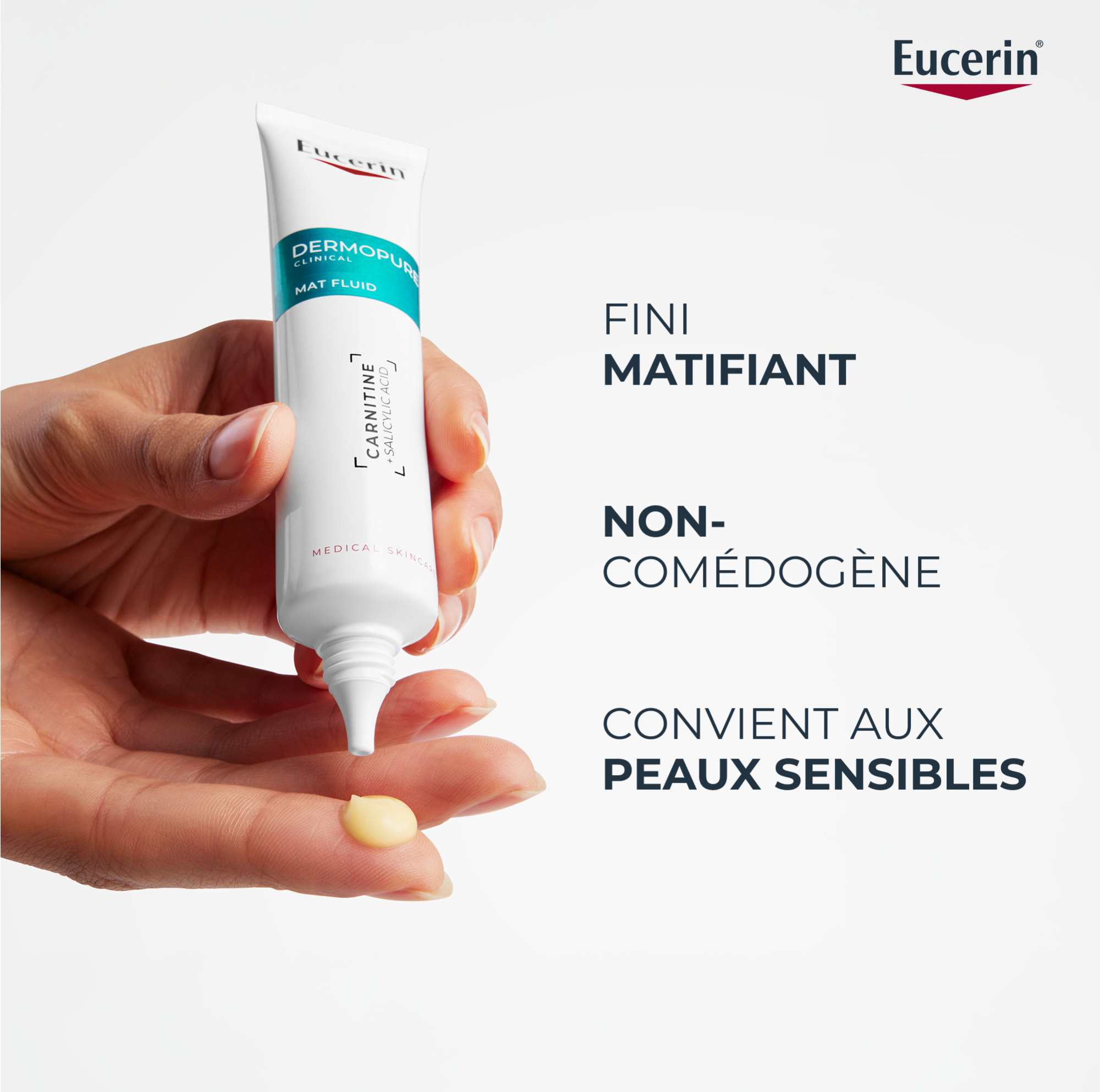 Le Fluide Matifiant MAT DermoPure Eucerin permet de lutter efficacement contre les imperfections et de limiter la production de sébum. Parfait pour les personnes à peau grasse ou à tendance acnéique, ce produit permet de :