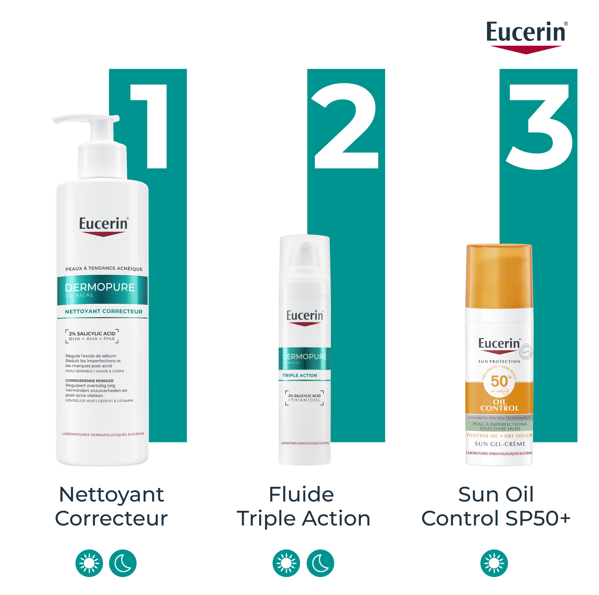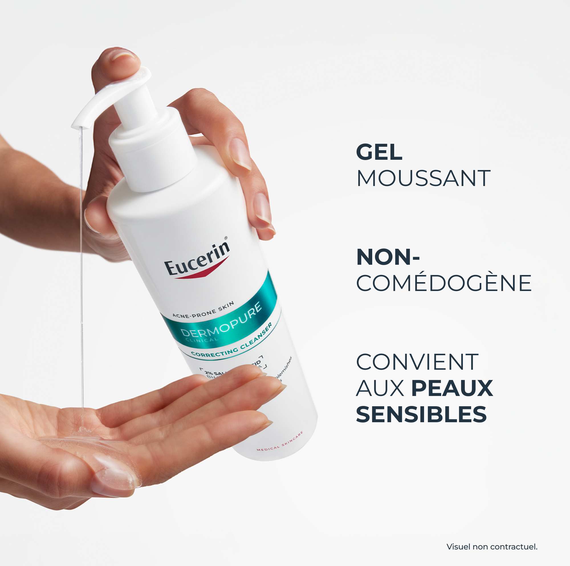 Le Gel Nettoyant Triple Action Eucerin DermoPure est conçu pour nettoyer la peau du visage et du corps tout en réduisant les marques post-acné.