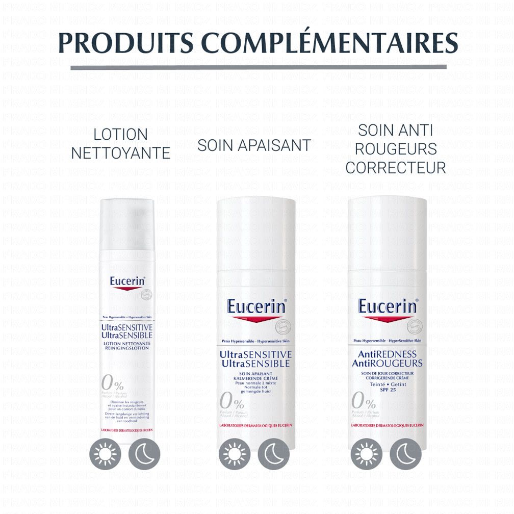 - Vous souffrez principalement de rougeurs ou désirez une protection solaire SPF. Préférez Eucerin Anti-rougeurs Soin Apaisant ou Eucerin Anti-rougeurs Soin de Jour Correcteur SPF 25.