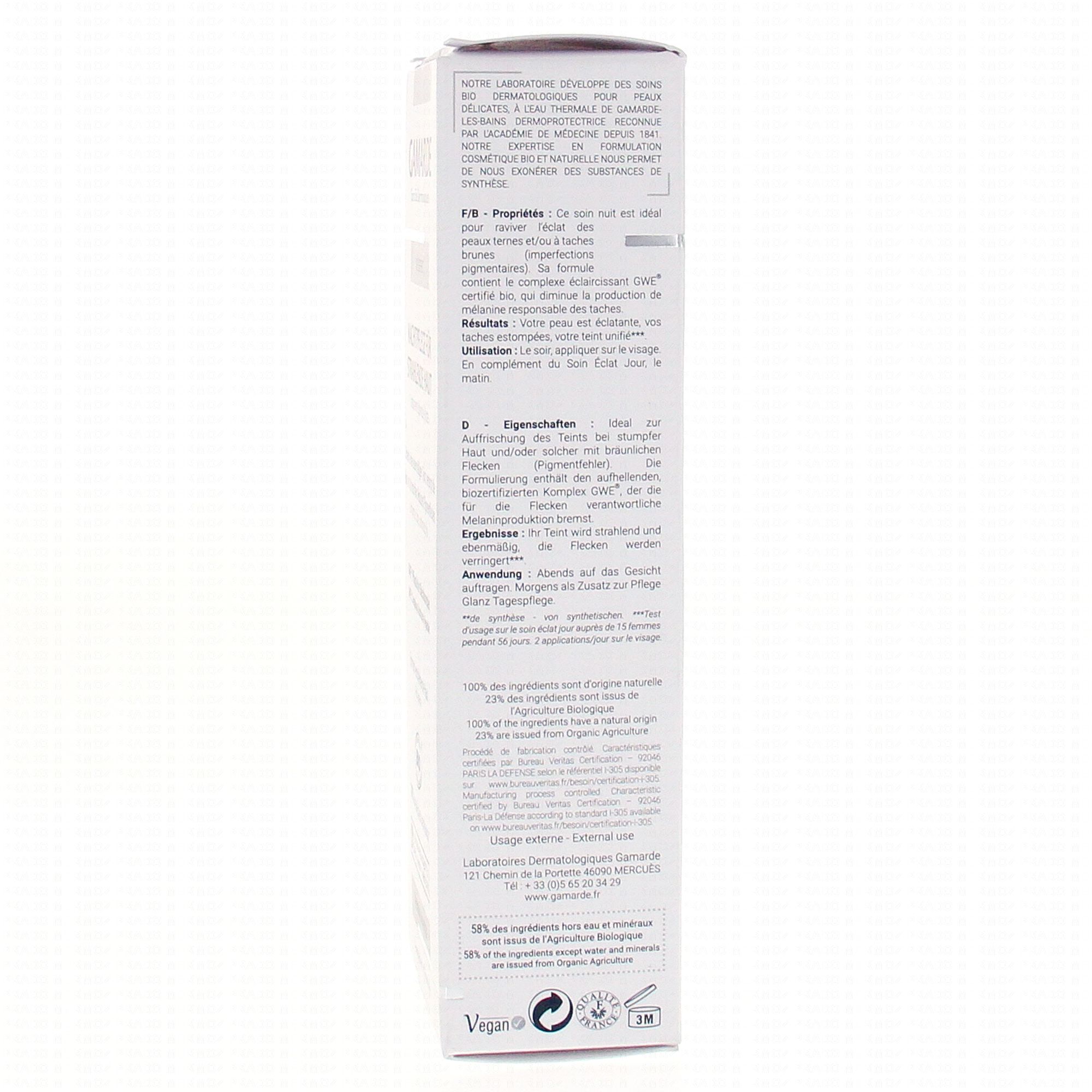 GAMARDE White effect soin éclat nuit bio tube 40g