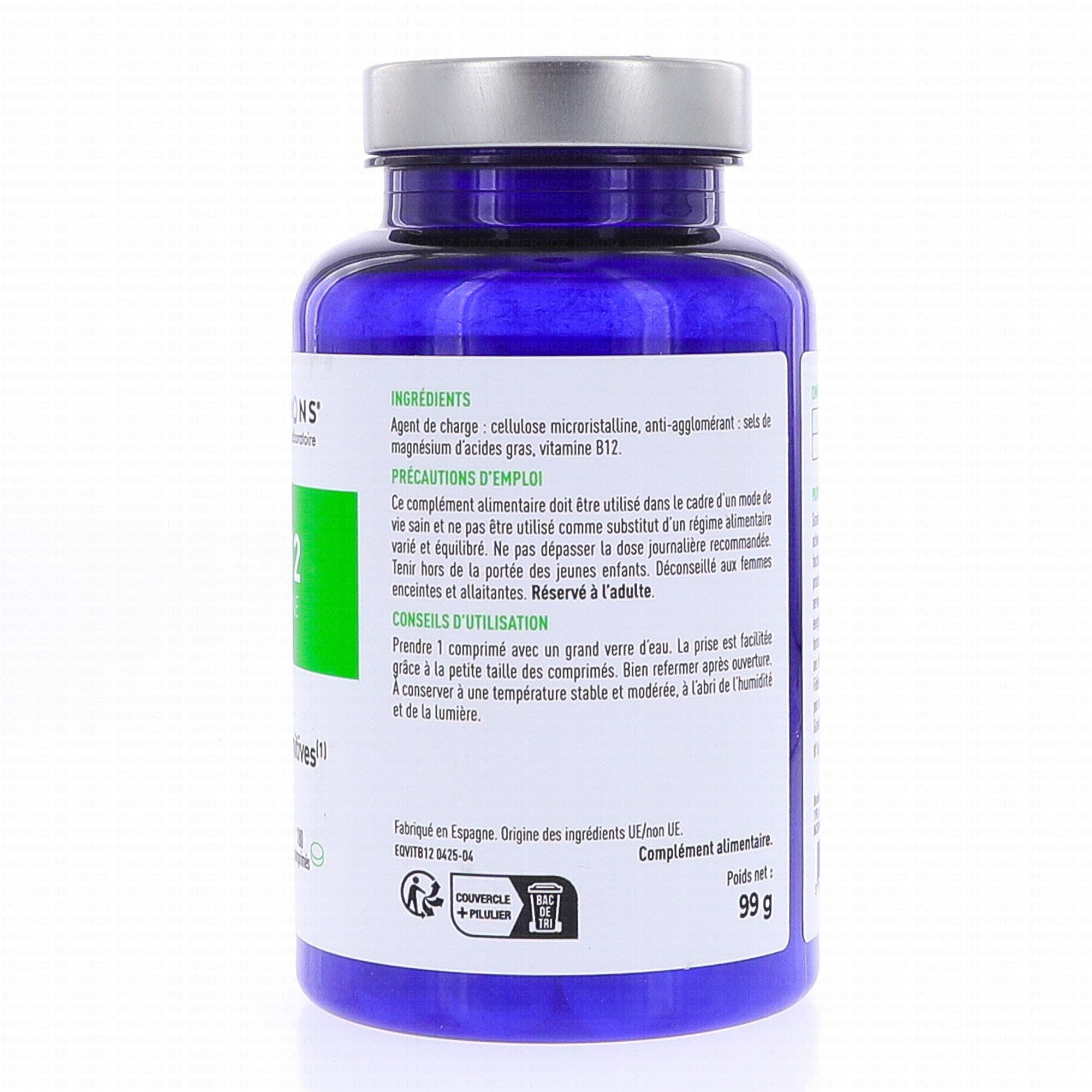 - Indications mentionnées sous réserve d'une consommation minimale de 0,375 µg de Vitamine B12. Apport journalier recommandé (AJR) en Vitamine B12: 2,5 µg