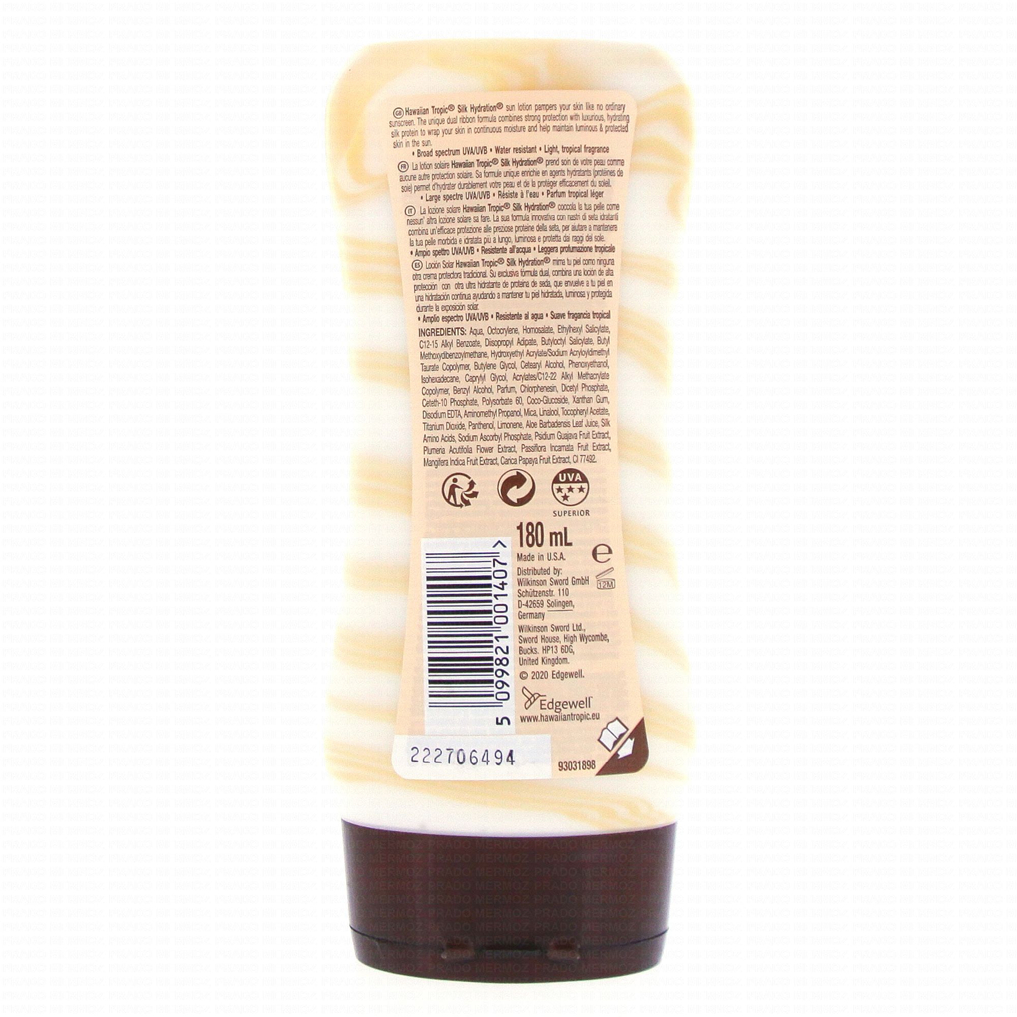 Le lait solaire Hawaiian Tropic hydrate durablement la peau durant 12h et la protège du soleil. Avec Hawaiian Silk Hydratation, votre peau est douce et lumineuse.