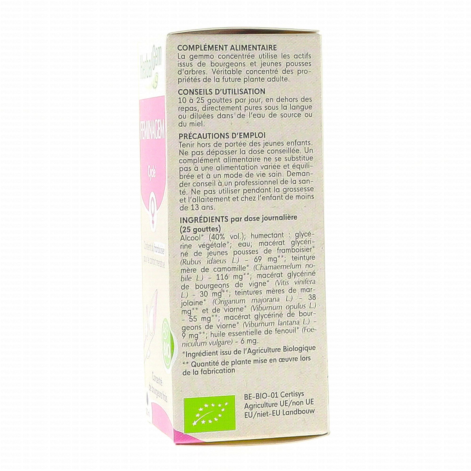 HERBALGEM Concentré de bourgeons frais - Feminagem Cycle bio 30 ml contient les éléments suivants :