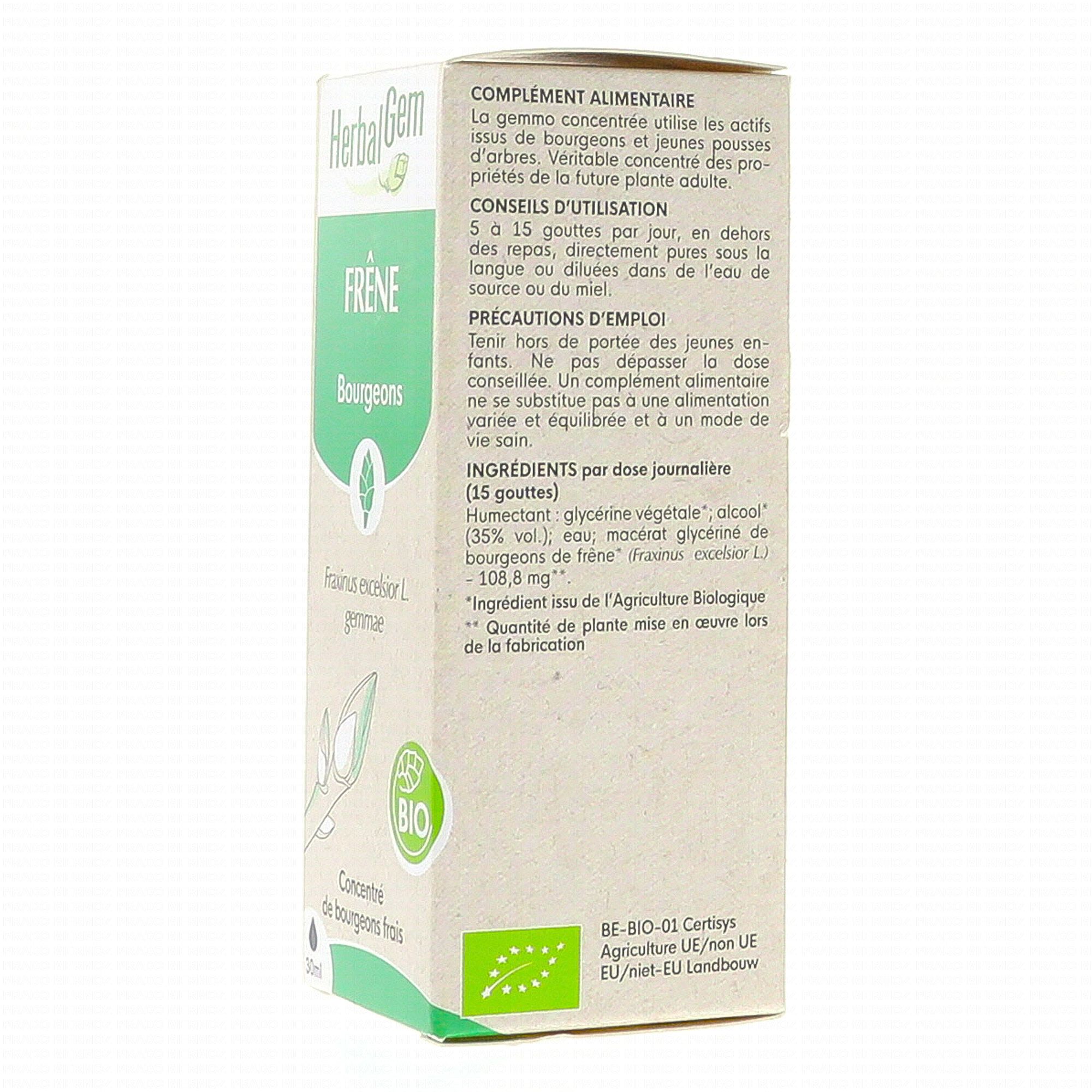 HERBALGEM Concentré de bourgeons frais - Frêne bourgeons bio 30ml contient les éléments suivants :