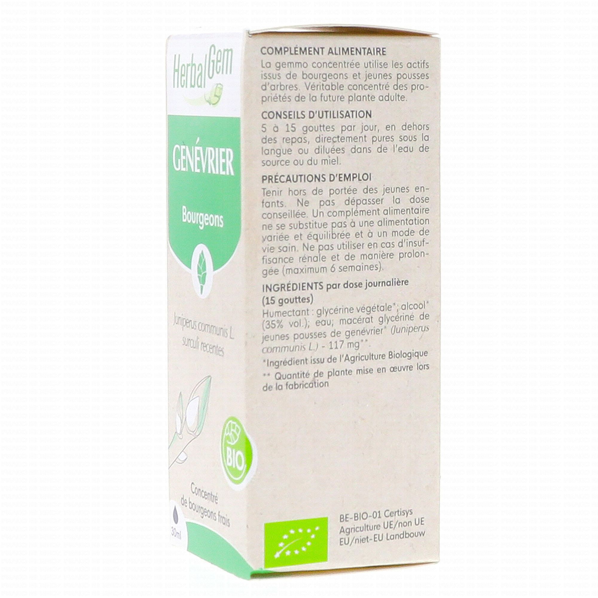 HERBALGEM Concentré de bourgeons frais - Genévrier bourgeons Bio 30ml contient les éléments suivants :