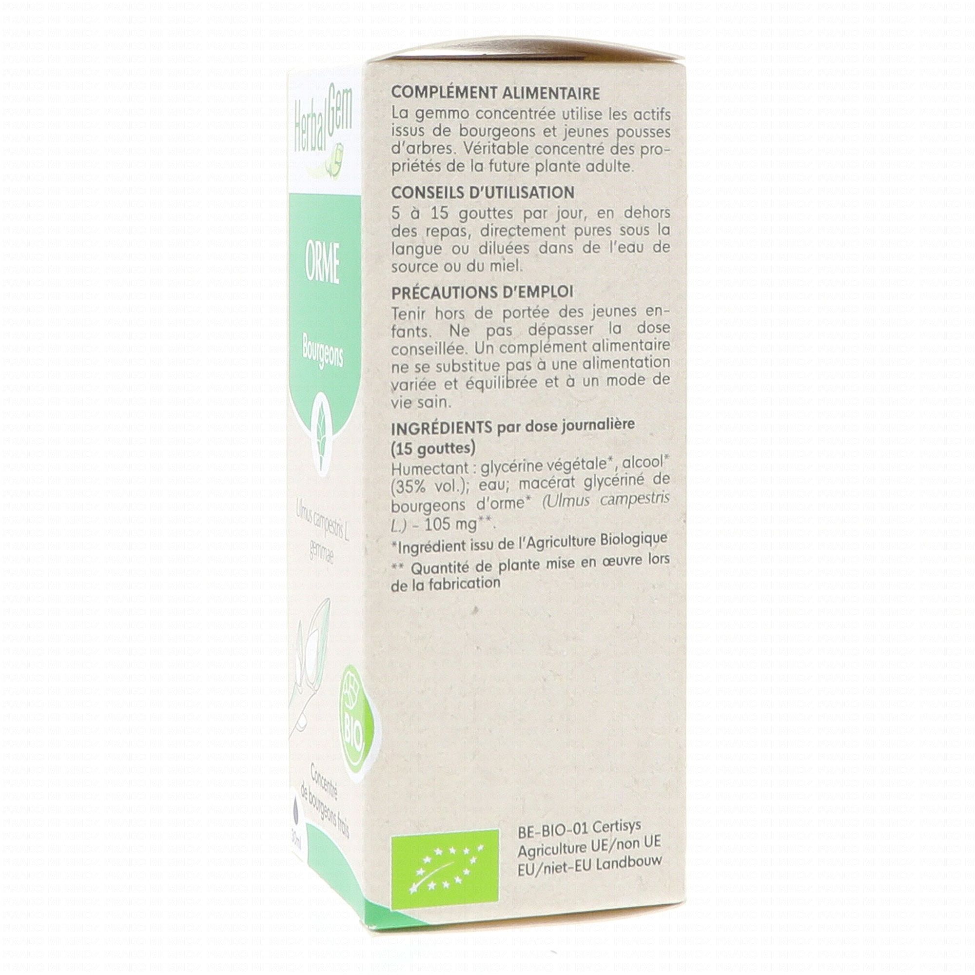 HERBALGEM Concentré de bourgeons frais - Orme Bio 30ml : Profitez des bienfaits de l'Orme BIO de Herbalgem, pour un soutien naturel de votre organisme de manière biologique