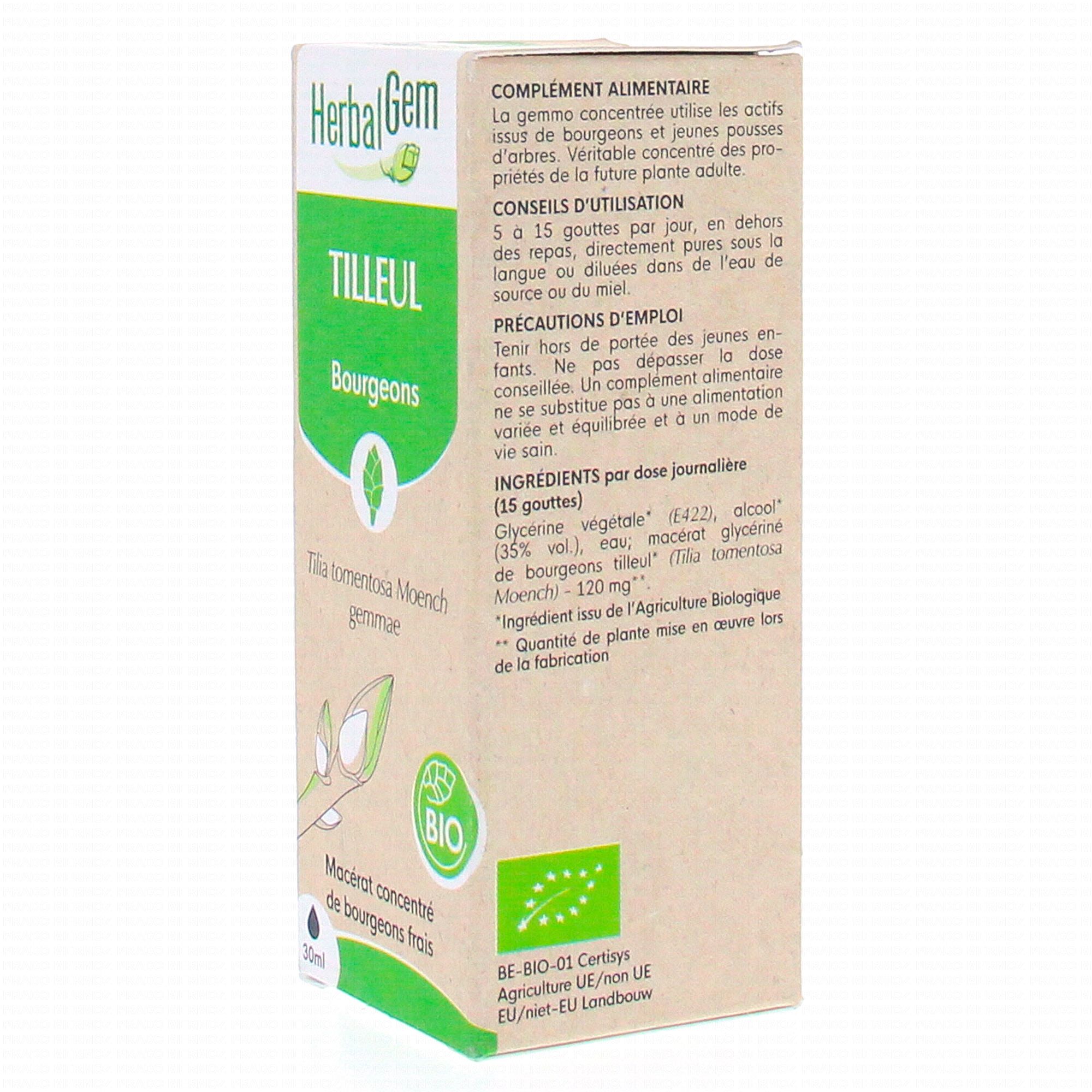HERBALGEM Concentré du bourgeons frais - Tilleul bourgeons Bio 30ml contient les éléments suivants :