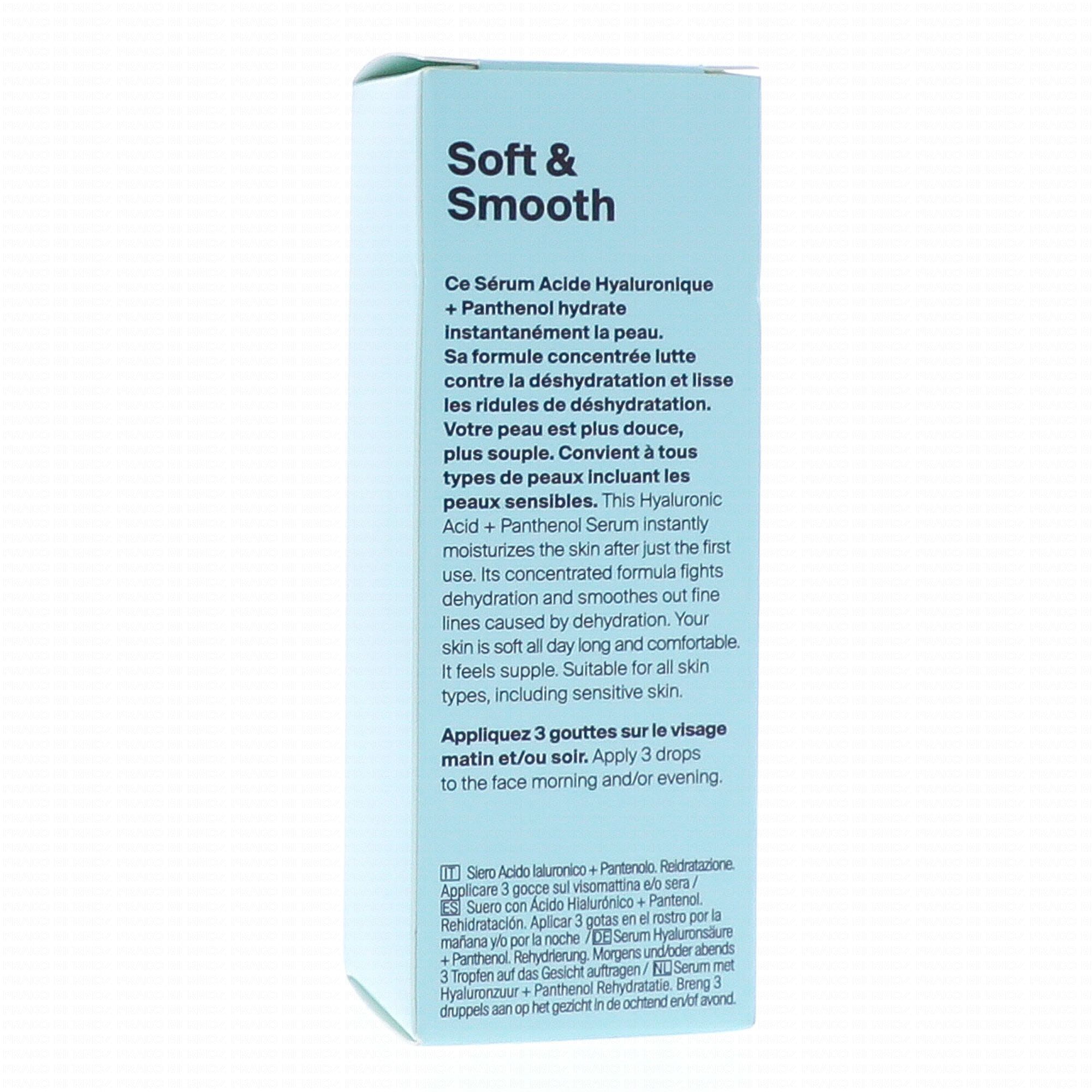 Découvrez la puissance d'un duo d'actifs surdoués. Ce sérum associe l'Acide Hyaluronique, capable de retenir l'eau au cœur de la peau, au Panthénol, reconnu pour ses vertus apaisantes et réparatrices. Dès la première application, il procure une hydratation intense et durable pour lutter contre les ridules de déshydratation.