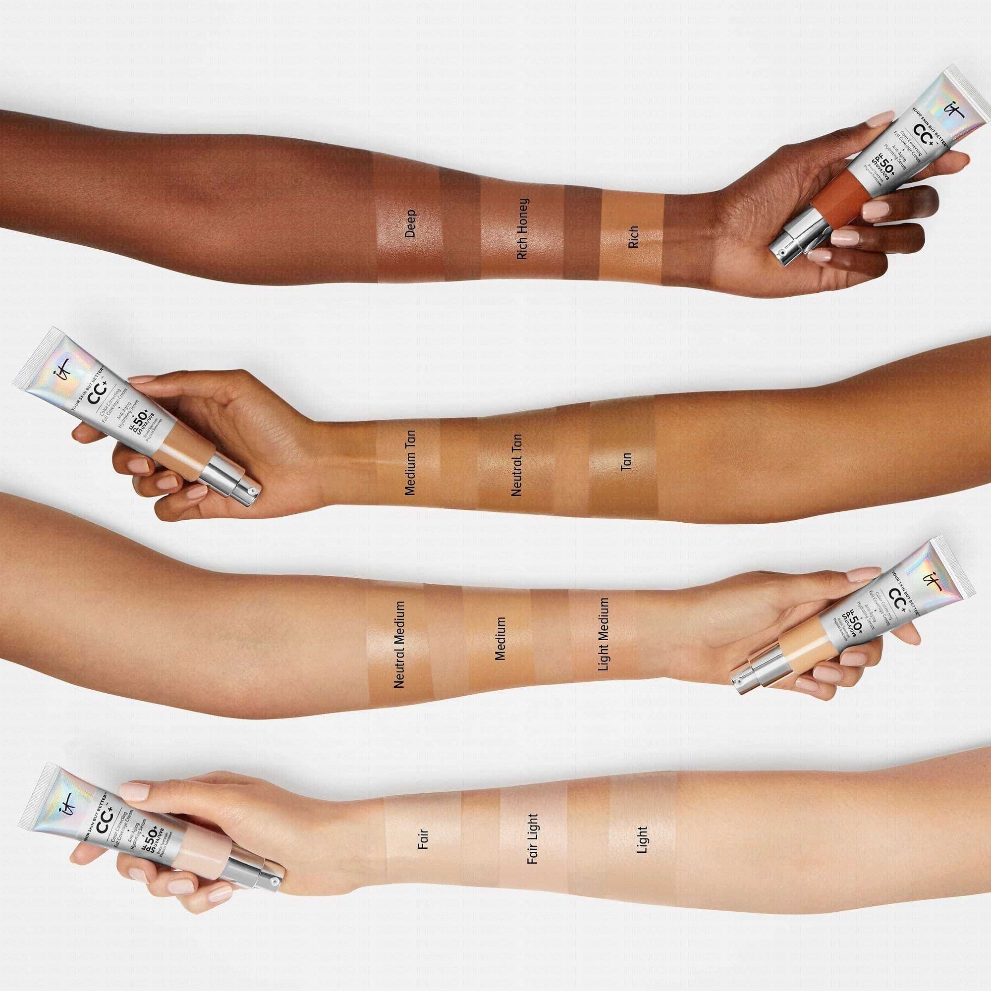 Votre routine beauté en un seul produit avec la CC+ Cream Oil Free SPF40 Haute Couvrance IT Cosmetics, N°1 des ventes aux Etats-Unis*, pour un fini mat anti-pores qui dure !