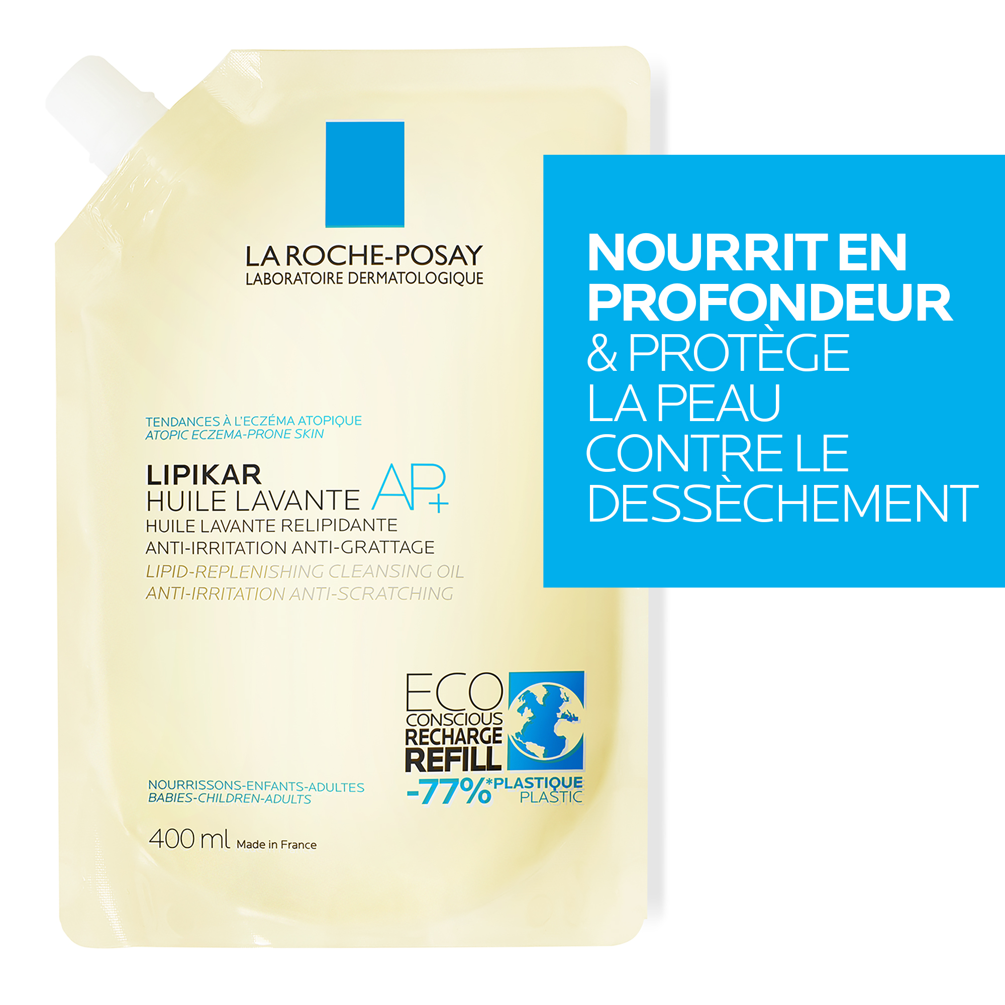 Indiquée dans le cadre de sécheresse sévère du bébé à l'adulte, l'huile lavante AP+ Lipikar des laboratoires dermatologiques de la Roche-Posay est destinée aux peaux sèches à tendance à atopique voire à l'eczéma.