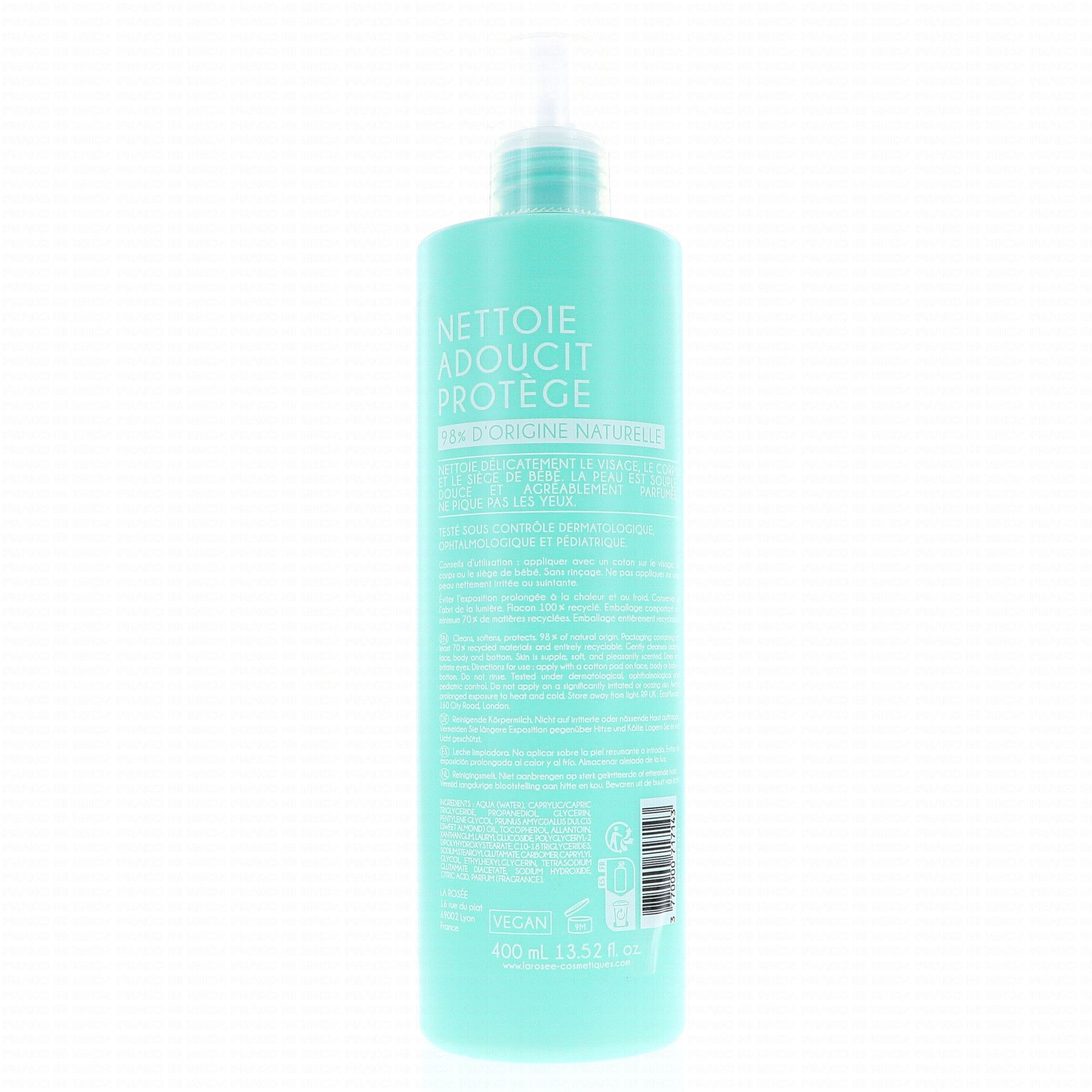 LA ROSÉE Bébé Lait de toilette nettoyant à l'huile d'amande douce BIO flacon pompe 400ml