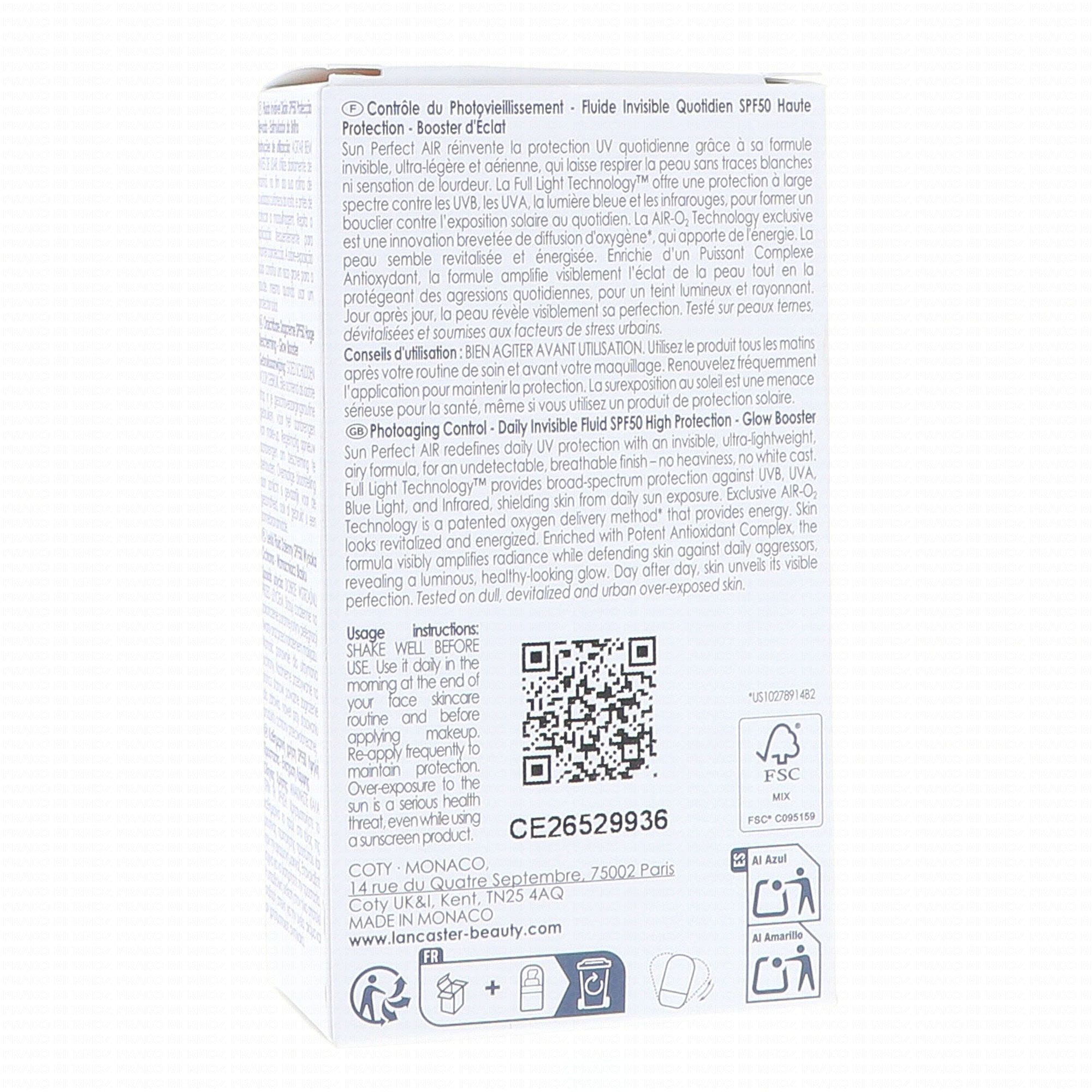 LANCASTER Sun Perfect AIR - Fluide Invisible Quotidien Glow Booster SPF50 40 ml