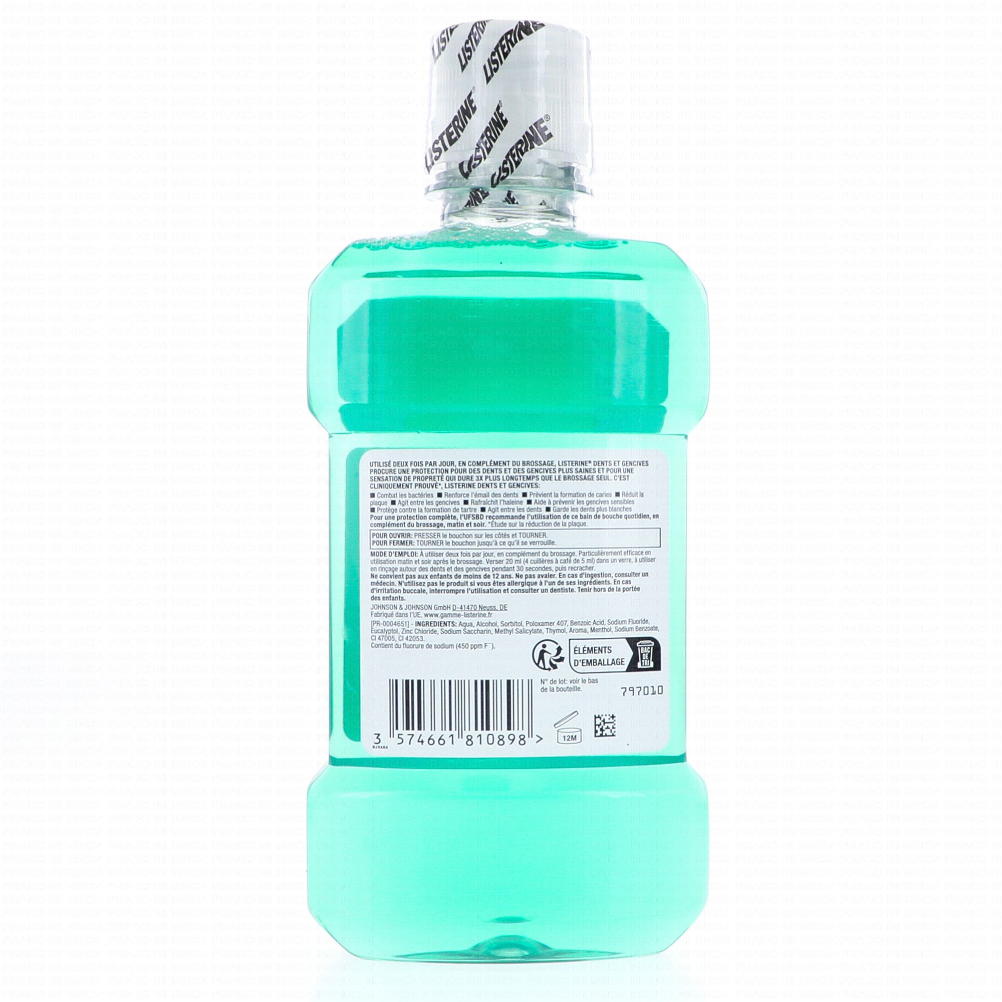 Pour parfaire l'hygiène bucco-dentaire quotidienne, le bain de bouche Listerine favorise l'élimination des bactéries responsables de la plaque dentaire. Sa composition aux huiles essentielles et au fluor réduit les saignements et les irritations des gencives et renforce l'émail des dents. Son utilisation procure une haleine fraîche. Prévient la formation du tartre et l'apparition des caries, protège et renforce l'émail des dents. Rafraîchissant de l'haleine. Usage quotidien. Conditionnement : flacon plastique.