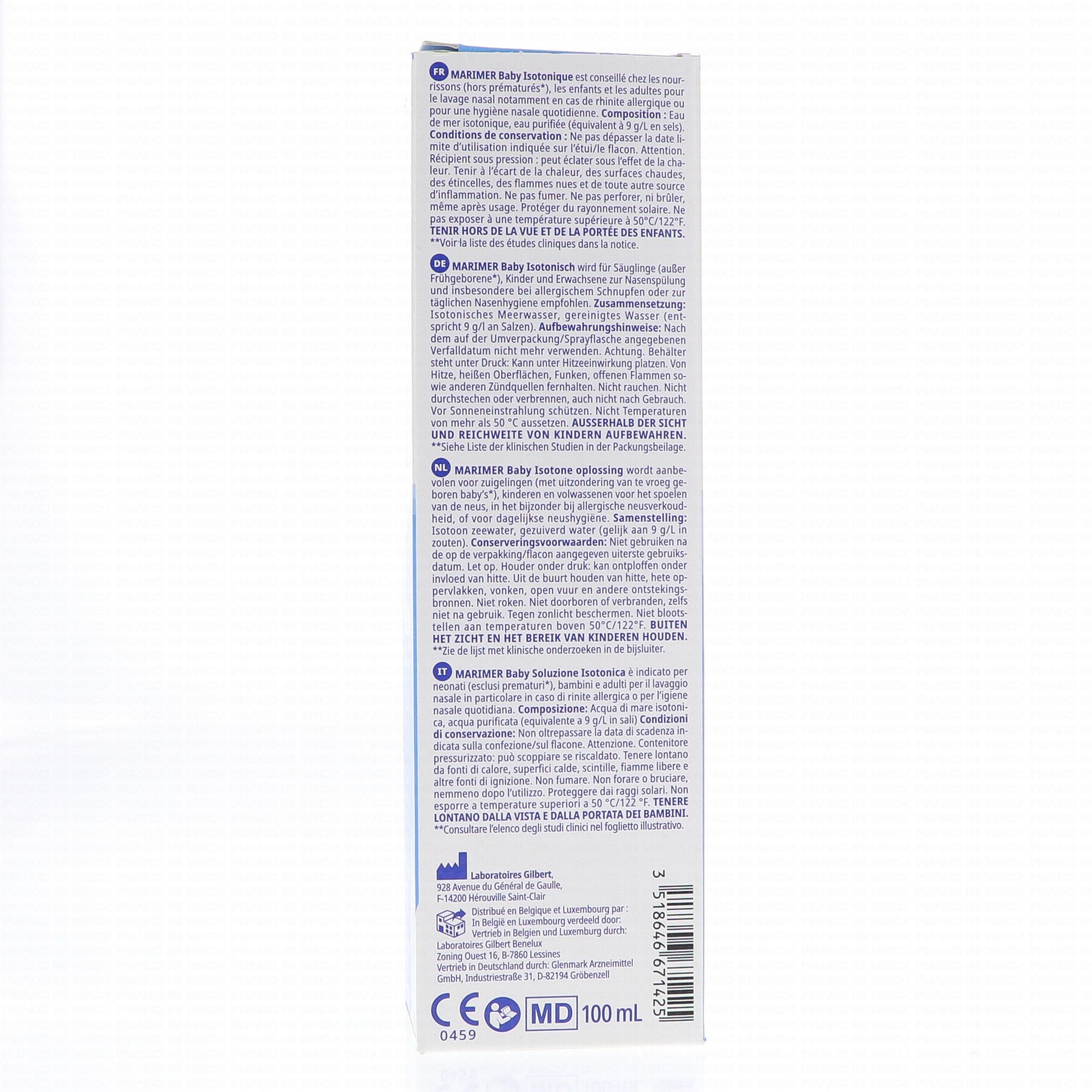 Marimer Baby Spray Hygiène Nasale est un spray d'eau de mer 100% naturelle, riche en sels minéraux et oligo-éléments marins.