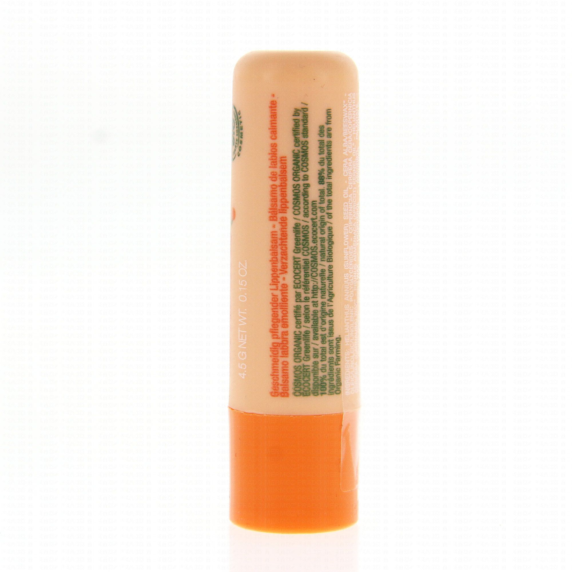 Enrichi en huile d'abricot bio, ce baume à lèvres adoucissant, certifié bio, hydrate et adoucit les lèvres déshydratées.