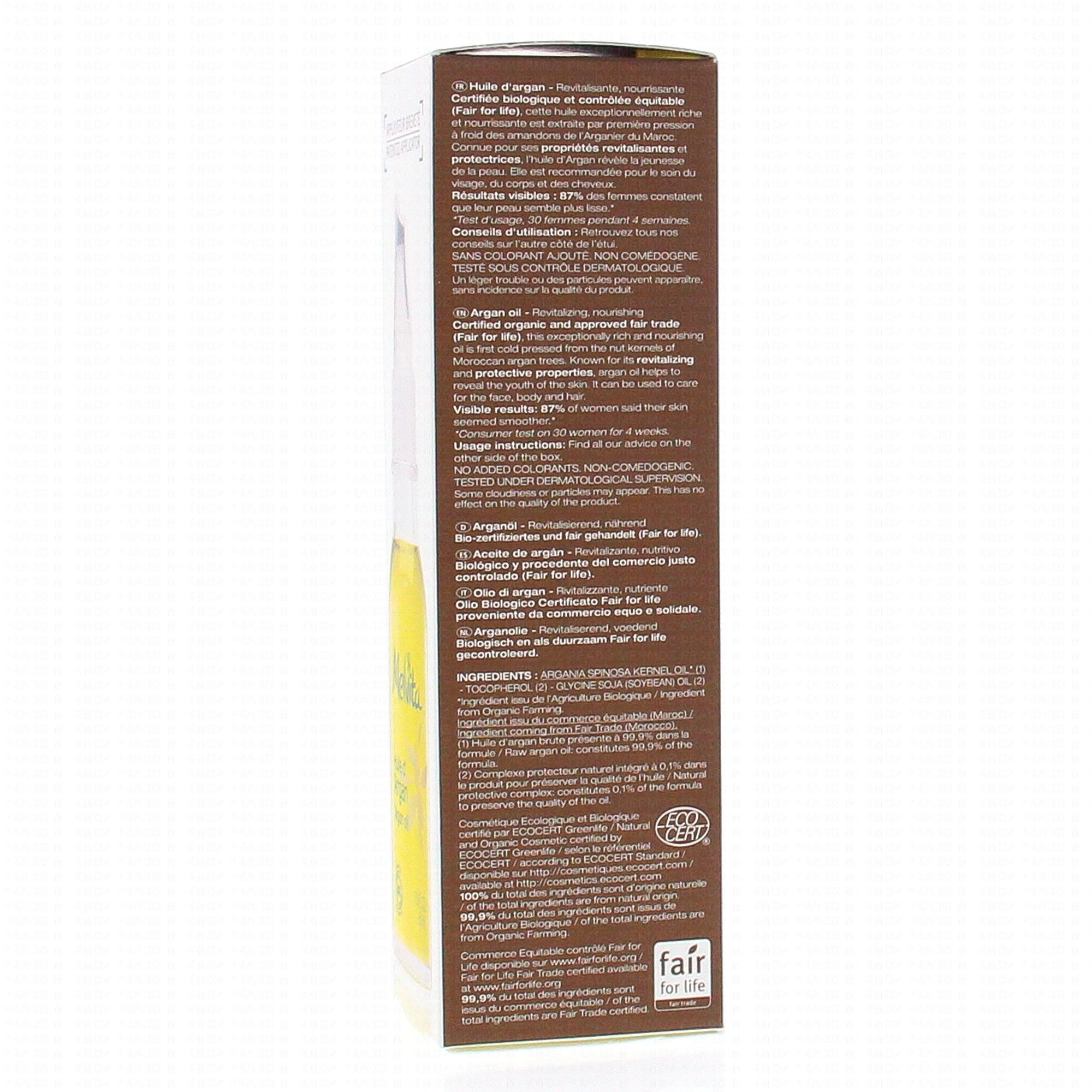 Pour un usage généreux, retourner le flacon au-dessus du creux de la main puis le remuer doucement. Répartir l'huile sur la peau à l'aide des mains. Pour un usage localisé, retourner doucement le flacon et le mettre directement au contact de la peau sur la zone souhaitée. Utiliser le flacon d'huile comme un pinceau et le tenir incliné en faisant glisser l'embout sur la peau. Avant l'application de votre soin hydratant quotidien, appliquer l'huile d'argan bio sur le visage ou le corps puis faire pénétrer en massant délicatement. Pour les cheveux, appliquer l'huile d'argan bio en masque ou sur les pointes et laisser poser quelques heures ou une nuit. Laver les cheveux et rincez abondamment à l'eau froide.