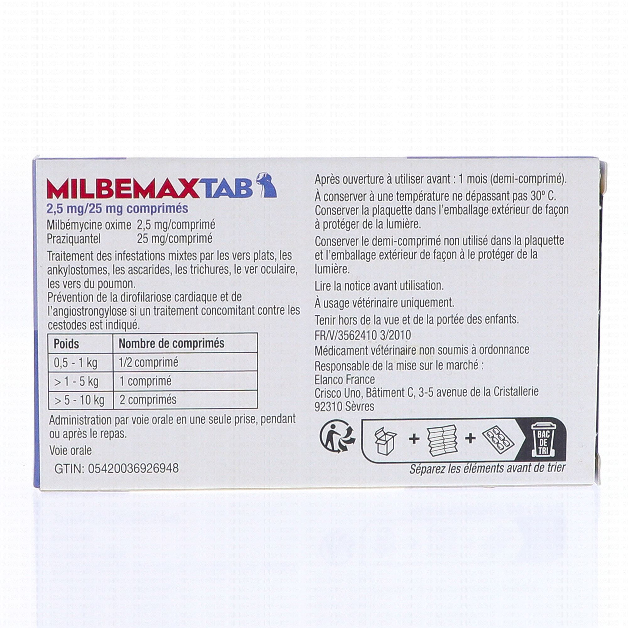 Milbémycine oxime..... 2,5 mg Praziquantel..... 25,0 mg Excipient QSP..... 1 comprimé sécable de 125 mg