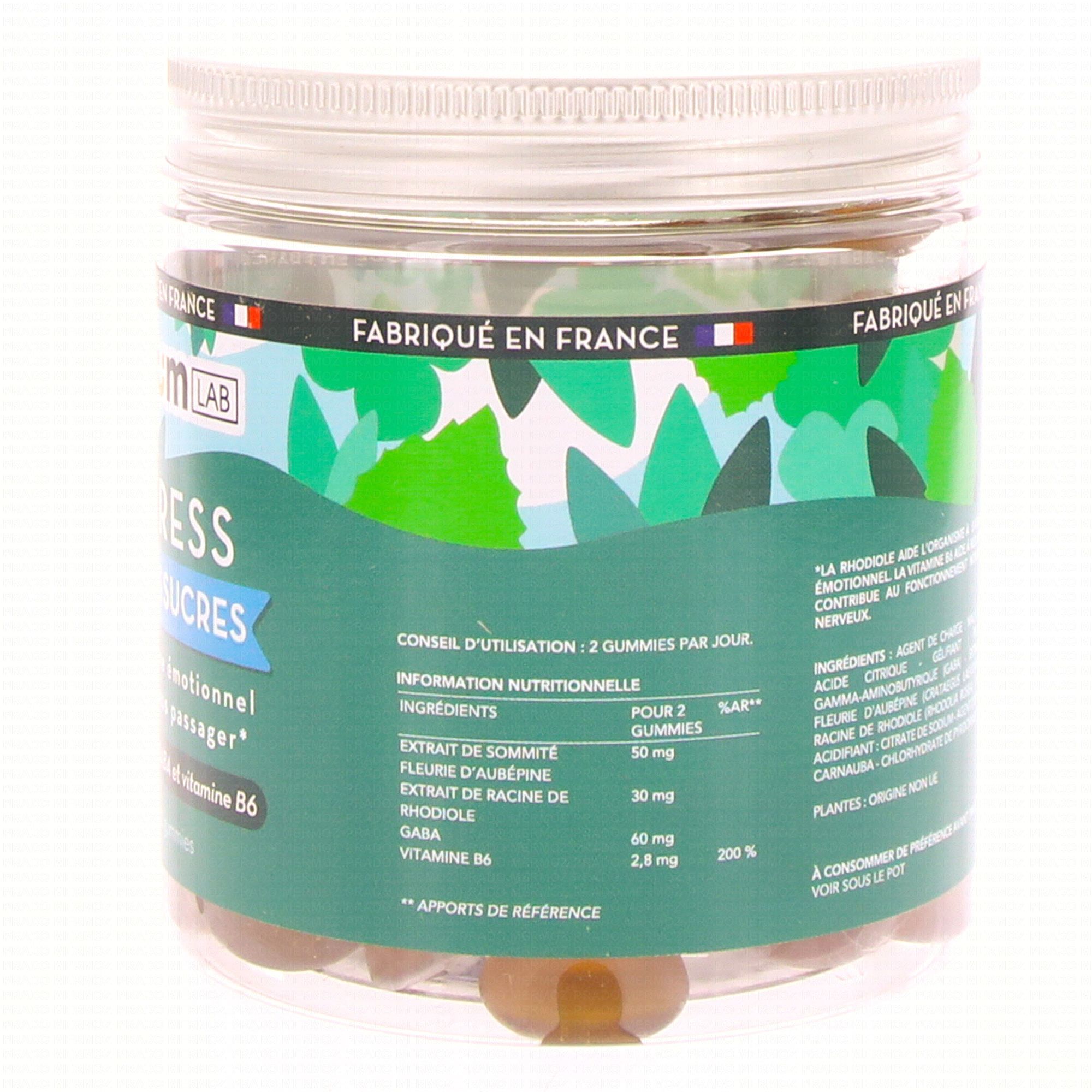 MIUM LAB Stress x42 gummies contient les éléments suivants :